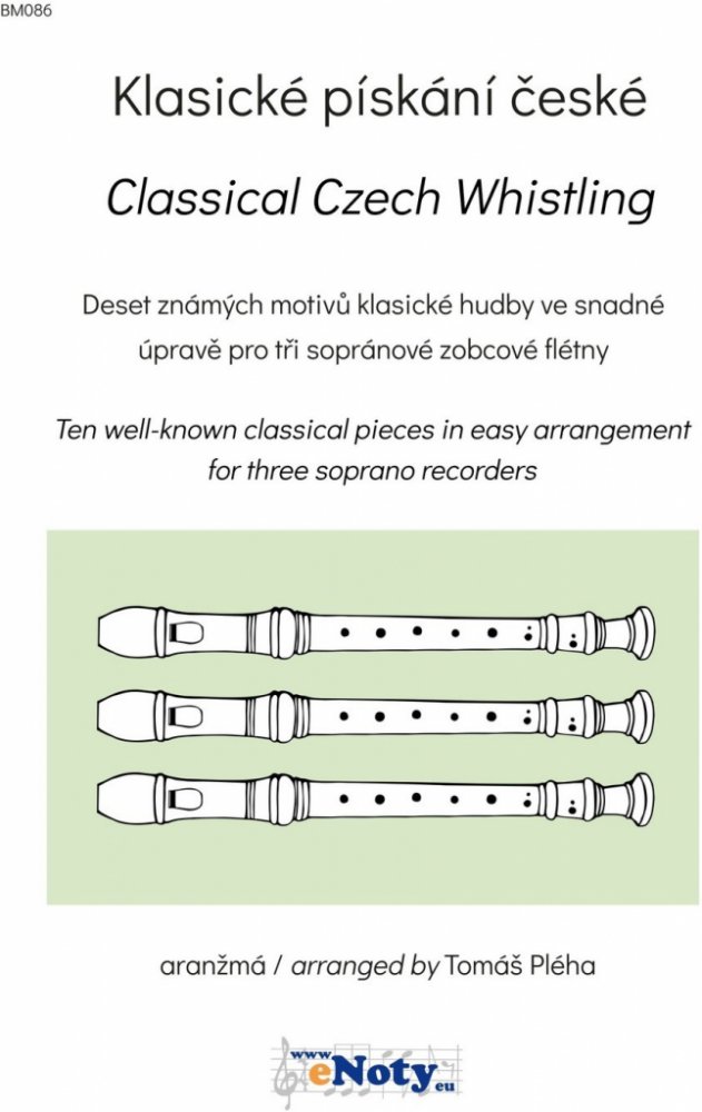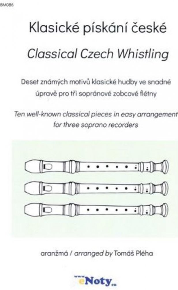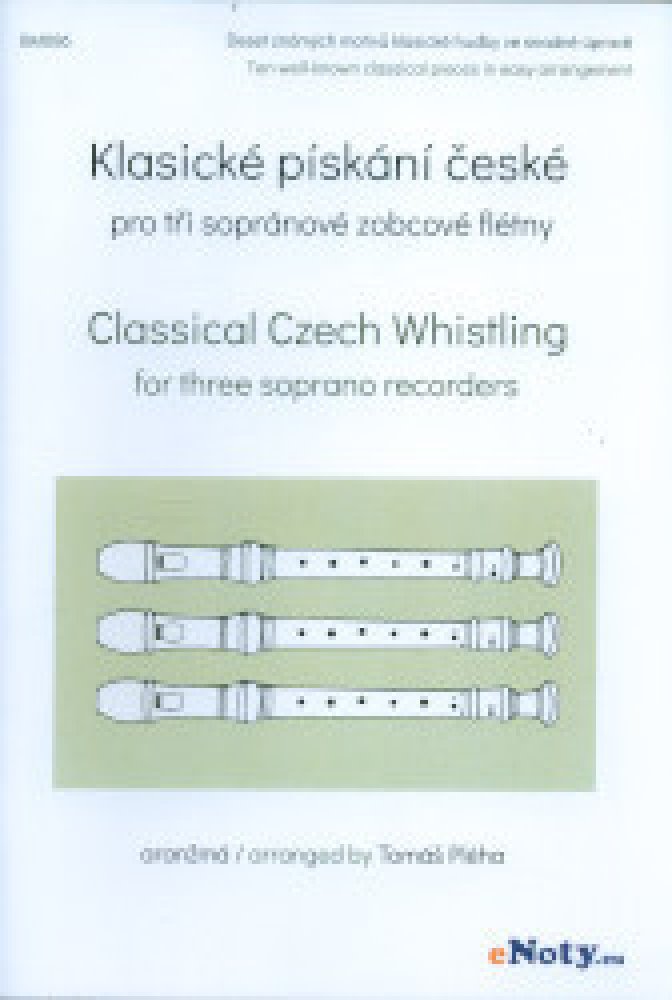 Klasické pískání české Vám přináší deset známých motivů klasické hudby českých hudebních skladatelů ve snadné úpravě pro tři sopránové zobcové flétny nebo soubor zobcových fléten. Skladby pro Vás vybral a upravil Tomáš Pléha.Má hvězda / My Star (Smetana) 2.Andělské přátelství / Angel Friendship (Michna) 3.Pilky / Pilky (Janáček) 4.Polka C dur / Polka C major (Smetana) 5.Proč bychom se netěšili / Let Us Rejoice (Smetana) 6.Tempo di valse / Tempo di valse (Dvořák) 7.Skočná / Skočná (Dvořák) 8.Sousedská / Neighbors Dance (Vaňhal) 9.Vjezd gladiátorů / Entrance of the Gladiators (Fučík) 10.Vltava / The Moldau (Smetana)
