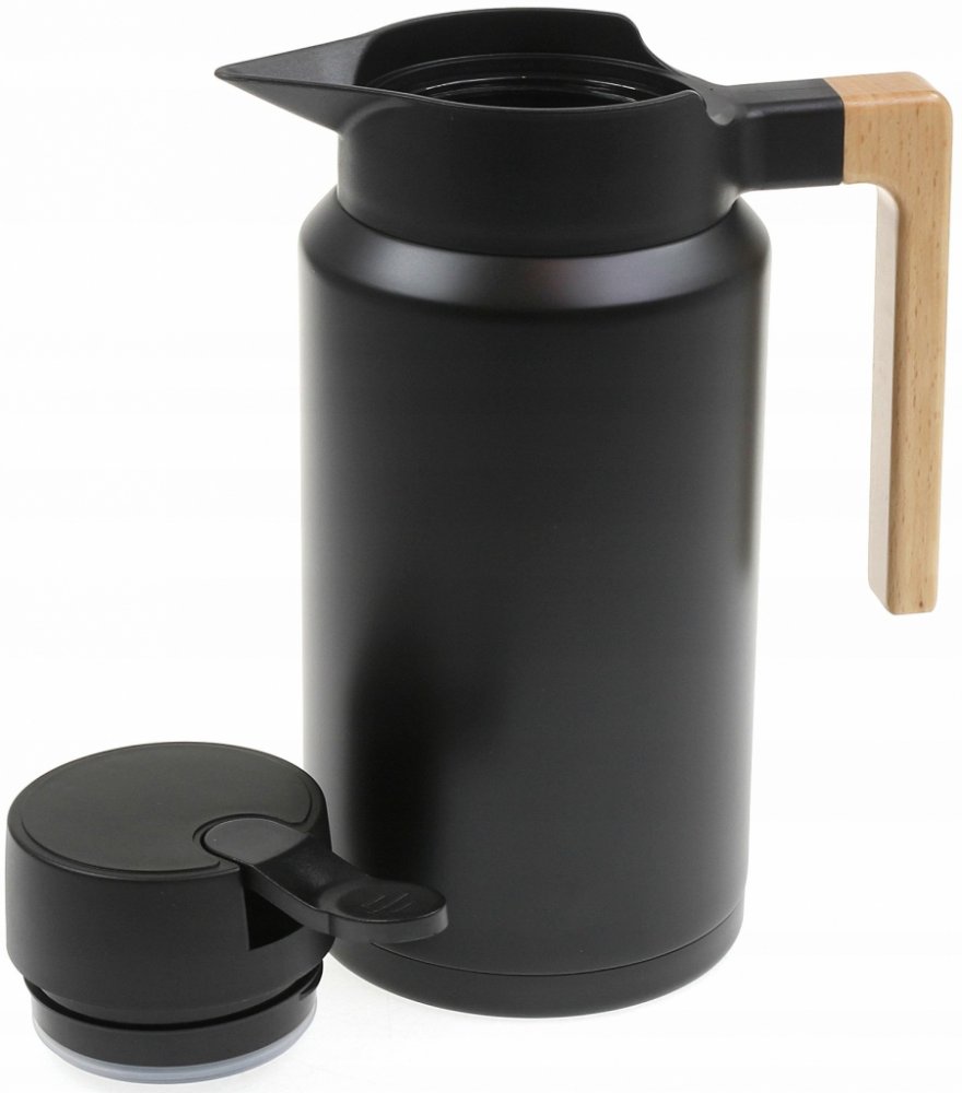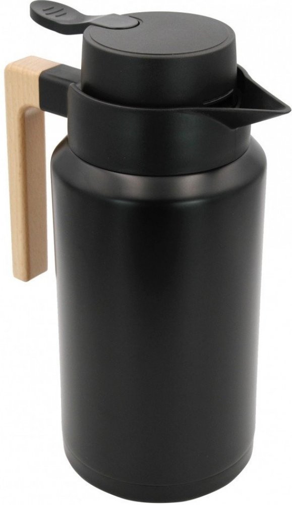 Konferenční termoska 2,0 l od společnosti KLAUSBERG- Vyrobena z vysoce kvalitní lakované nerezové oceli.- Vakuová izolační technologie udržuje teplotu.- Dvojitá, dobře izolující stěna.- Udrží nápoje studené nebo horké až 12 hodin.- Otevírání a nalévání nápojů jednou rukou.- Vzduchotěsná a dobře izolující konstrukce víka.- Vnější tělo zůstává po naplnění chladné.- Elegantní rukojeť v barvě dřeva.- Neobsahuje BPA.- Objem 2,0 l Barva: Černé. Height : 27,5 cm. Liczba produktów w zestawie: 1 szt. Materiál: Stal. Volume : 2 cm.