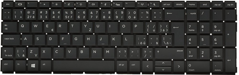 Klávesnice má kompletní natištěné České znaky. Jsou jimi například písmena ě, ú, ů a další. S Českým operačním systémem klávesnice podporuje optimální rozložení kláves QWERTZ. V praxi to znamená, že písmeno “Z“ se píše standartní klávesou. Písmeno “Y“ se pak ukrývá v levé dolní části klávesnice.