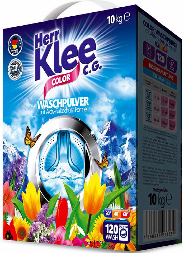 Renomovaný německý prací prášek určený pro praní barevného prádla. Dosahuje výborných pracích výsledků. Příjemná a svěží vůně. Obsahuje aktivní látky pro odstraňování skvrn a změkčující přísady. Chrání barvy. Teplotní prací rozsah: 30, 40, 60 ºC VAROVÁNÍ! H319 Způsobuje vážné podráždění očí. Uchovávejte mimo dosah dětí. Způsobuje vážné poškození očí. Dráždí pokožku. Zamezte styku s očima. Při zasažení očí důkladně oči vypláchněte vodou. Lidé s citlivou nebo poškozenou kůží by se měli vyvarovat delšího kontaktu s výrobkem. Po použití si opláchněte ruce. Způsobuje vážné podráždění očí. Uchovávejte mimo dosah dětí. Při zasažení očí: Několik minut opatrně vyplachujte vodou. Vyjměte kontaktní čočky, jsou-li nasazeny a pokud je lze vyjmout snadno. Pokračujte ve vyplachování. Přetrvává-li podráždění očí: Vyhledejte lékařskou pomoc/ošetření. Dovezeno z Německa
