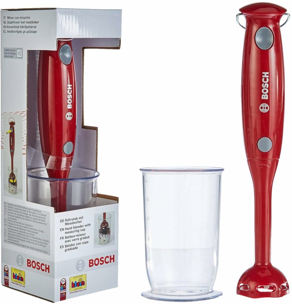 Kuchyňští pomocníci a profesionálové, vezměte na vědomí - tento ruční mixér je skutečným kouzelným nástrojem. Jednoduše stiskněte nástavec na mixér, použijte svou fantazii k naplnění odměrky všemi ingrediencemi, které chcete jemně rozmixovat, a můžete začít. Čepele bezpečné pro děti se začnou otáčet a jsou připraveny okamžitě zastavit, pokud vám v cestě překáží malé prsty. Tento elegantní doplněk do kuchyňky na hraní zní jako skutečný mixér a dává malým dětem pocit, že pracují ve své dětské kuchyňce jako dospělí. To je nejen zábava, ale také posiluje kreativitu, představivost a motoriku.