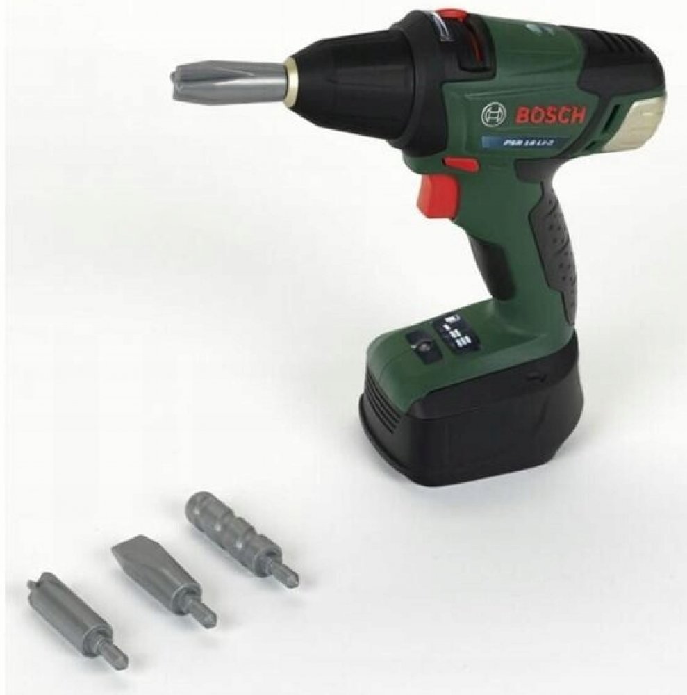 Hrací aku vrtačka Bosch II byla vytvořena vysoce uznávanou společností Klein, která – s ohledem na děti, které rády hrají roli dospělých – navrhuje vysoce kvalitní hračky napodobující domácí spotřebiče, nářadí, kosmetiku apod.