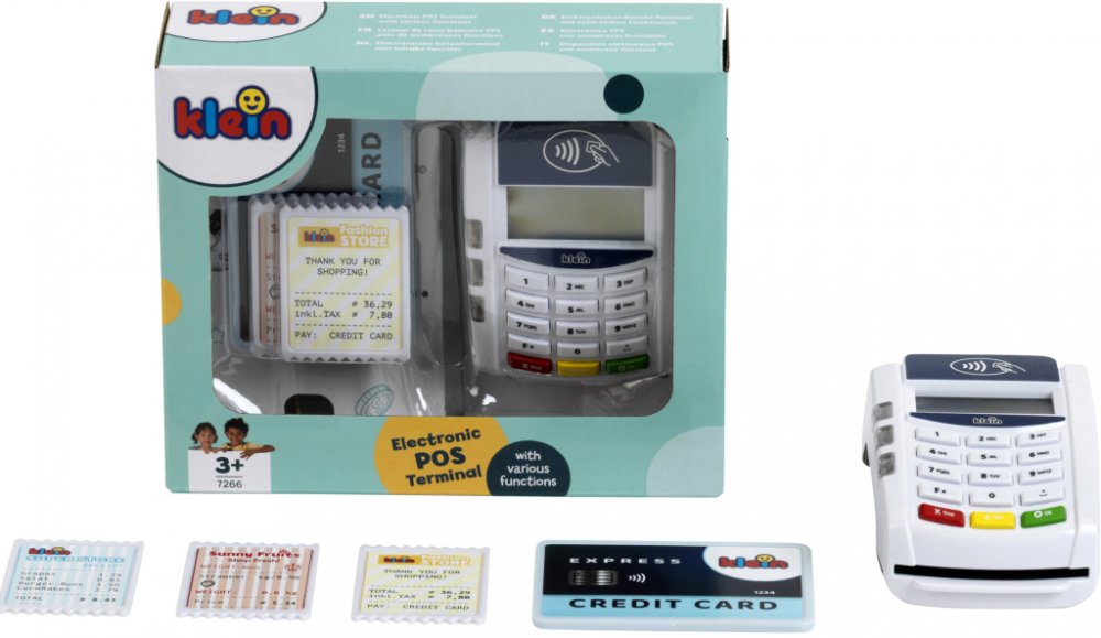 tabletd Klein Hračka na hraní rolí »Platební terminál II se světlem a zvukem« Ponořte se do světa obchodu s naším platebním terminálem se světlem a zvukem! Tento bateriově napájený terminál je perfektním doplňkem pro každou hračkářskou pokladnu a obchod. S realistickým slotem na kreditní karty, který přehrává zvukové efekty, a inovativní bezkontaktní platební funkcí se hraní stává ještě realističtějším. Součástí balení jsou tři účtenky a jedna kreditní karta s funkcí bezkontaktní platby, takže můžete ihned začít. Ideální pro malé obchodníky od tří let, kteří se chtějí hravou formou naučit zacházet s penězi a moderními platebními metodami. Vlastnosti Na baterie Slot na kreditní karty se zvukem Bezkontaktní platební funkce Včetně tří účtenek a jedné kreditní karty s funkcí bezkontaktní platby Hravou formou podporuje zacházení s penězi a moderními platebními metodami Vlastnosti produktu Typ produktu: Hračka na hraní rolí Materiál: Plast Doporučený věk: od 3 let Rozměry: 11,1 x 6,7 x 4,2 cm Hmotnost: 110 g Obsah balení: 1x platební terminál; 3x účtenky; 1x kreditní karta Varování: Pozor! Nevhodné PRO Děti DO 3 Let. Obsahuje malé části a/nebo odnímatelné malé části, které by mohly být například spolknuty. Nebezpečí udušení. Obsahuje skleněný displej, který může při rozbití hračky způsobit zranění. Uchovejte adresu a informace.