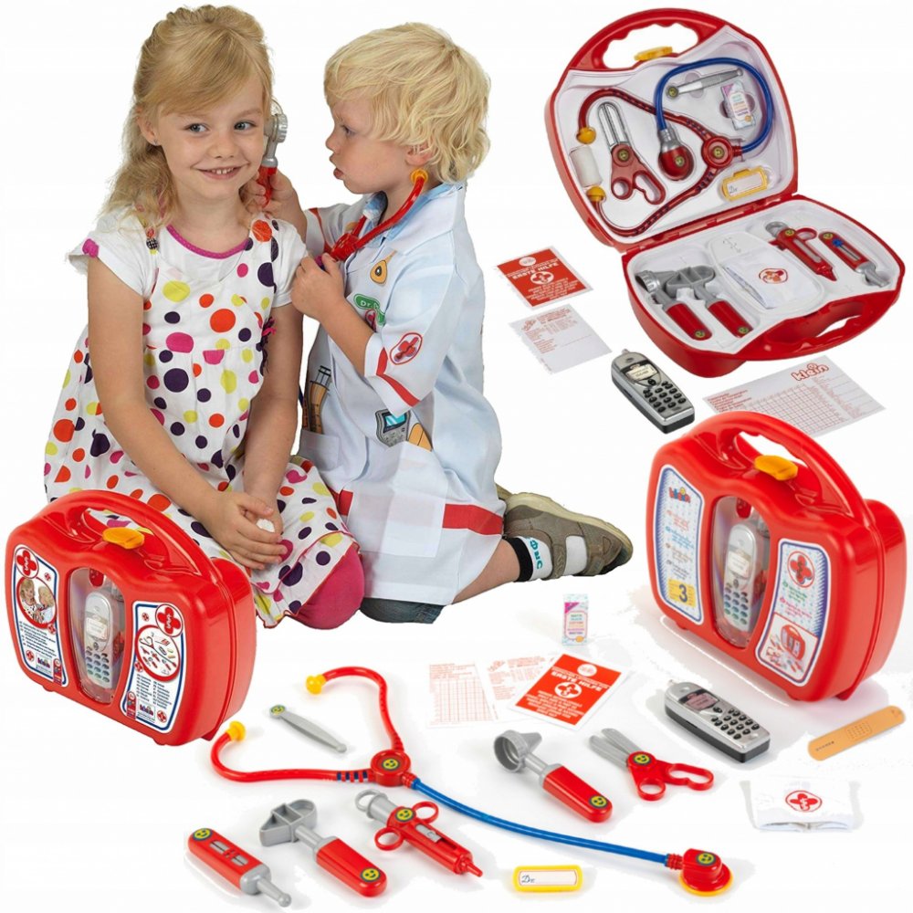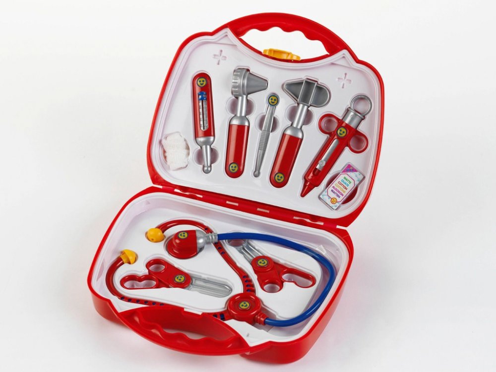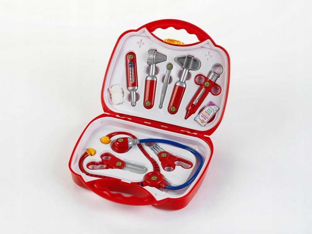 Kufr obsahuje lékařské pomůcky pro dětskou hru na doktory a doktorky