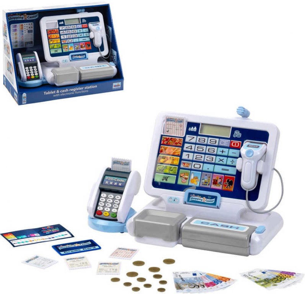 Pokladna s platebním terminálem a odnímatelným tabletem. Obsahuje Elektronický displej, zvukové efekty, funkce kalkulačky, skener se zvukem a výklopná peněžní přihrádka s tlačítkem. Obsahuje tyto doplňky: mince, bankovky, 6 příjmových karet a 1 kreditní kartu. Baterie nejsou součástí balení. Vhodné od 3 let. Pokladna s platebním terminálem a odnímatelným tabletem. Obsahuje Elektronický displej, zv...