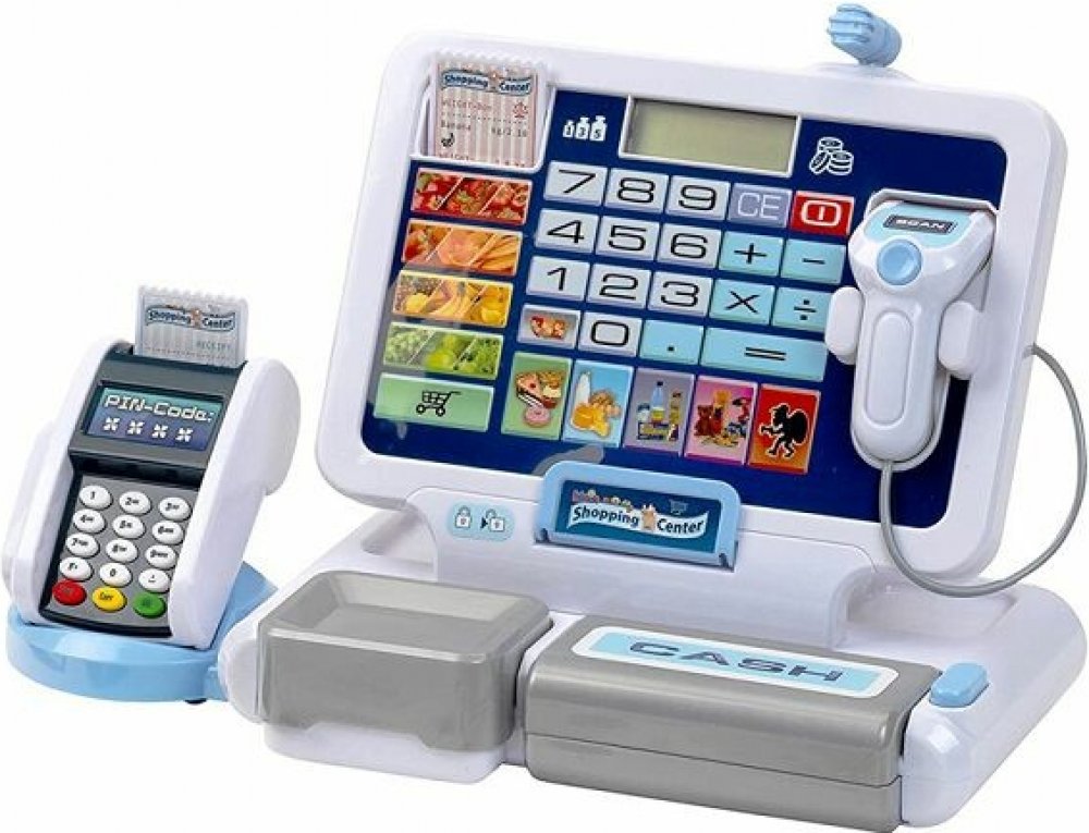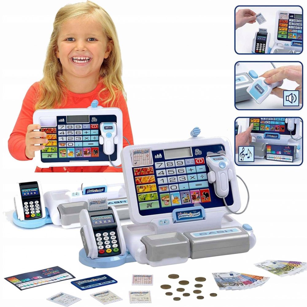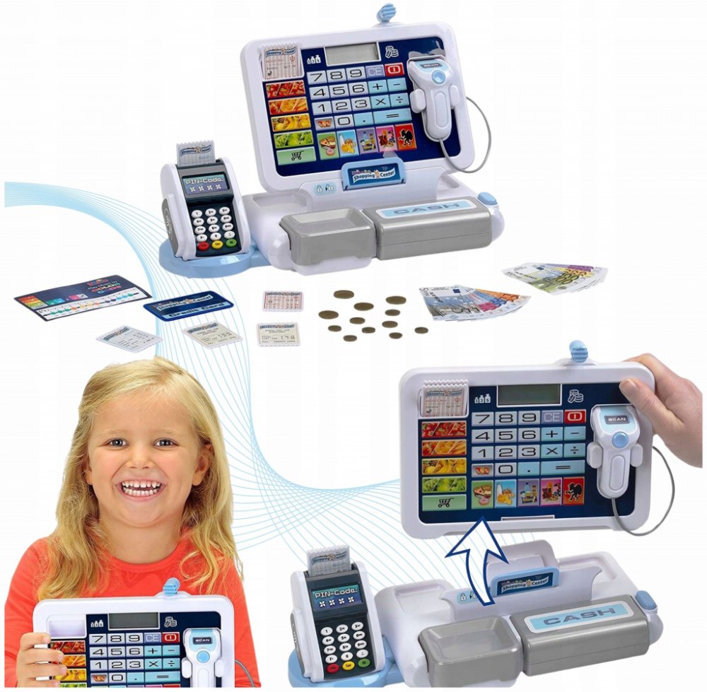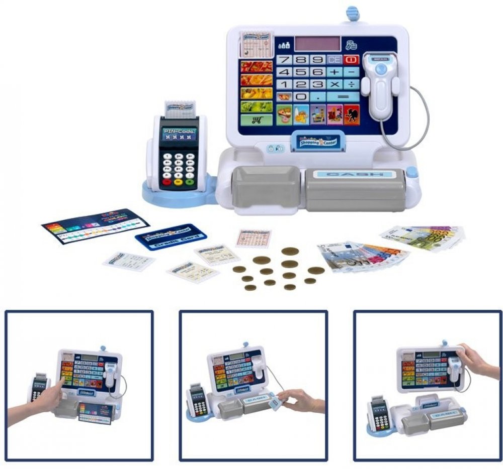 Pokladna s platebním terminálem a odnímatelným tabletem. Obsahuje Elektronický displej, zvukové efekty, funkce kalkulačky, skener se zvukem a výklopná peněžní přihrádka s tlačítkem. Obsahuje tyto doplňky: mince, bankovky, 6 příjmových karet a 1 kreditní kartu. Baterie nejsou součástí balení. Vhodné od 3 let. Pokladna s platebním terminálem a odnímatelným tabletem. Obsahuje Elektronický displej, zvukové efekty, funkce kalkulačky, skener se zvukem a výklopná peněžní přihrádka s tlačítkem. Obsahuje tyto…