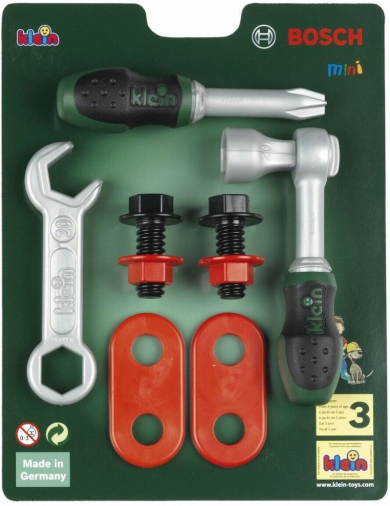 Dětská sada klučíčího nářadí v licenci Bosch. Vhodné pro děti od 3 let. Balení obsahuje: Klíč, ráčnu, 2x šroub s maticí, šroubovák, 2x spojovací článek