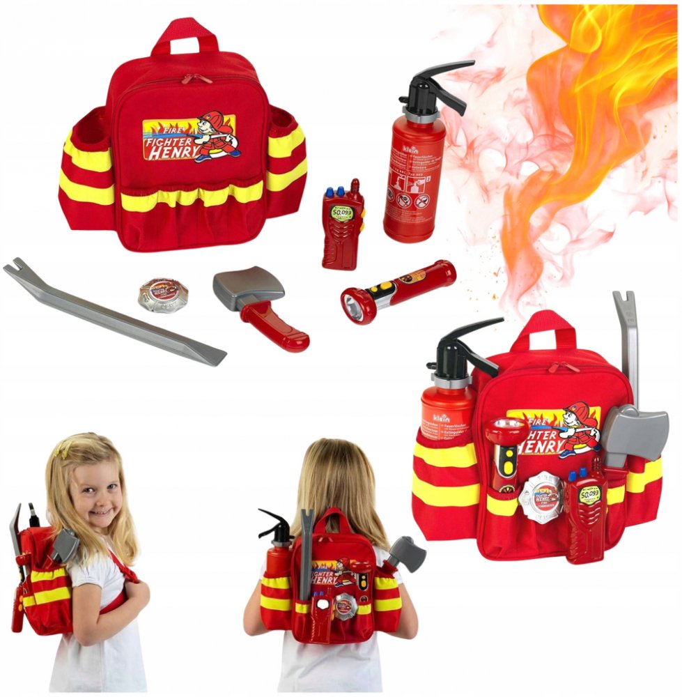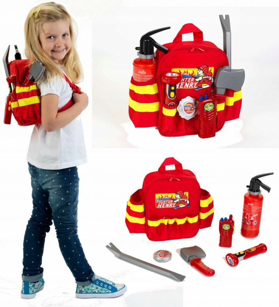 Hasičský záchranářský batůžek pro malé hasiče. V batůžku je spousta praktických věcí, které k vykonávání povolání požárníka potřebujete. Díky praktickým kapsičkám a velké kapse se do batohu vejde veškeré vybavení.
