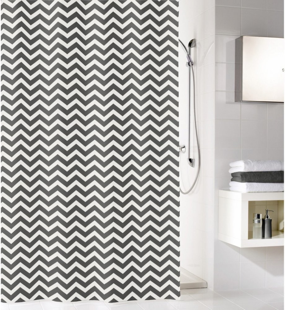 Kleine Wolke sprchový závěs cik cak břidlicový 180 cm x 200 cm je kvalitní sprchový závěs v moderním a atraktivním designu, který je vyroben ze 100% PEVA, takže je vodotěsný. Protože je vyroben z materiálu neobsahujícího PVC, je obzvláště ekologický. Závěs má zesílený šev pro kroužky.