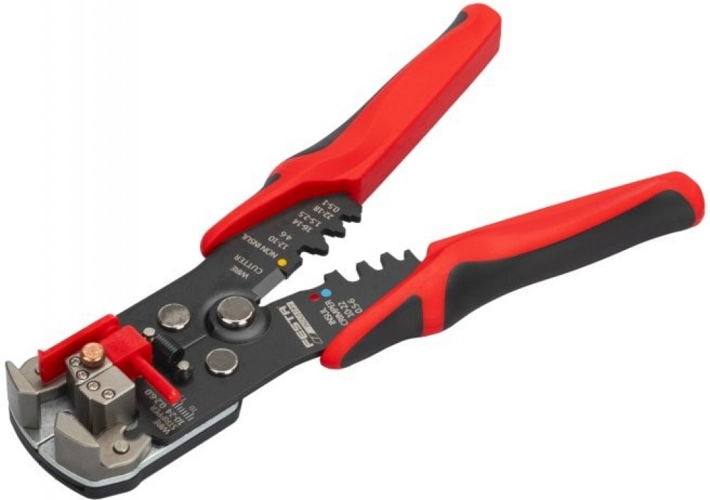 převodový mechanismus, nastavitelná délka odizolovávané časti vodiče - rychlý způsob odizolovávání, na jeden stisk - čelisti se samy přizpůsobí průměru drátu nebo vodiče