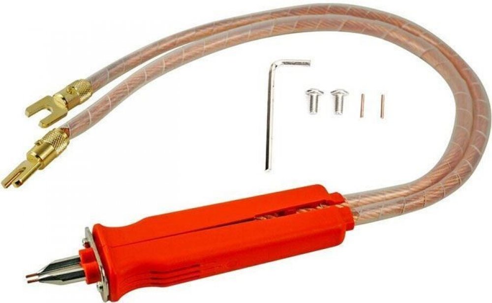Nástroj je určen pro bodové svařování niklových pásků k pólům akumulátorů. Kovový nástavec s hroty je od tělesa rukojeti pružně uložen a zajistí tak optimální kontakt se svařovanými části baterie. Součástí nástroje jsou dva náhradní hroty a nástroje pro upevnění. **Specifikace:** Model HB-70B Max tloušťka svarovaného pásku: 0,2mm Rozteč kontaktů: 4mm (možno nastavit 3-5mm) Kontakty 1,5x7mm Délka p...