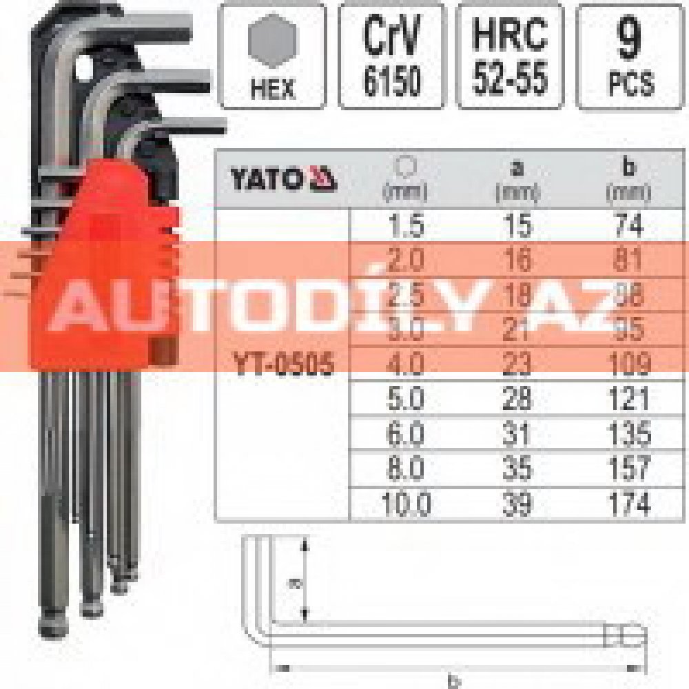Klíč - imbusový 1.5 - 10 mm CrV Yato YT-0505