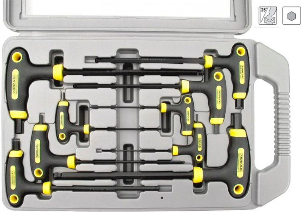 zakončení kuličkou pro práci pod úhlem až 30° ocelový dřík z jednoho kusu prochází celou rukojetí kvalitní CrV ocel tvrzená po celé délce ergonomická rukojeť z PP plastu potažená kvalitní protiskluzovou TPR pryží praktický plastový box Technické parametry: technické parametry: H2-10mm doplňující parametr: H 2-2,5-3-4-5-6-7-8-10mm ...