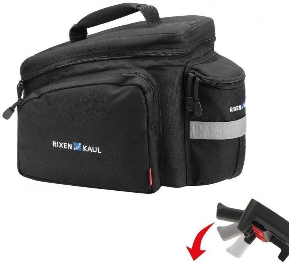 Univerzální a praktická RACKPACK 2 taška na kolo na zadní nosič je praktickým a stylovým řešením pro cyklisty, kteří chtějí mít své věci bezpečně u sebe během jízdy. Navržena s důrazem na funkčnost a estetiku, tato taška poskytuje dostatek úložného prostoru pro potřebné a důležité věci, zatímco zůstává pohodlná a bezpečná během cyklistických dobrodružství. Jednoduchá, funkční taška v klasickém designu R&K s dobře přístupnou hlavní přihrádkou s prostornými bočními kapsami a půlkruhovou přihrádkou na zadní straně, do které můžete uložit láhev. S reflexním prvkem, držákem světla, rukojetí a pláštěnkou. Naše tašky, boxy a textilní košíky s fixací UniKlip lze použít téměř na všechny nosiče. Hravě nastavíte šířku přesně na Váš nosič. Univerzální rychloupínák UniKlip 2 je součástí balení a je pro nosiče o Ø 10–16 mm a šířce od 9 až 16 cm. š xdxv: 24 cm x 35 cm x 23 cm hmotnost: 810 g objem: 10 l nosnost: max. 6 kg Umístění na kolo Produkt je ve barvě Černá.