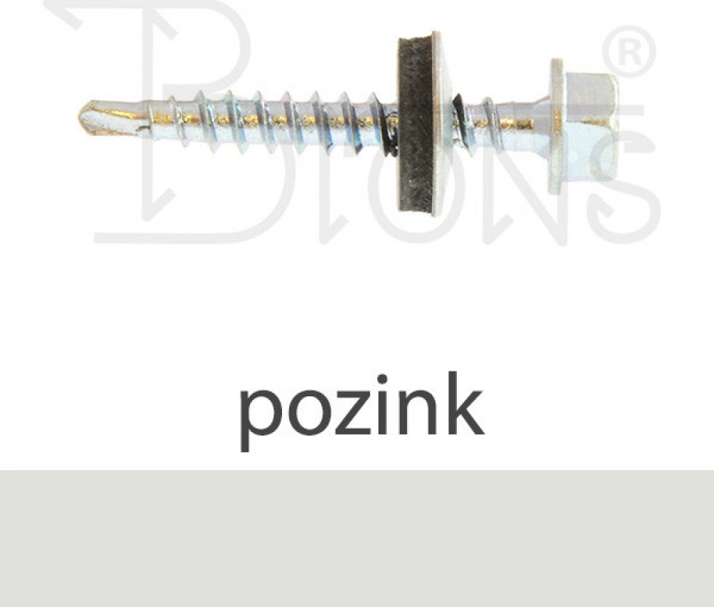 Samovrtný farmářský šroub do dřeva s gumovou těsnící podložkou EPDM, materiál pozinkovaná ocel.