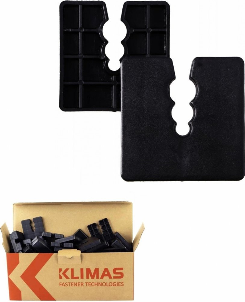 KLIMAS Wkret-met Distanční podložky 50x50mm - PVC se používají k vyrovnání nerovných ploch. Podložky mají 3 otvory, takže je lze uchytit pomocí spojek (šroubů) různých průměrů (6, 8, 10 mm). Mohou být použity mimo jiné na:- vyrovnání startovacích lišt pro zateplovací systémy- k vyrovnání latí a laťování- vyrovnání nosníků Způsob montáže Zvolte tloušťku podložky do vyrovnávací mezery mezi lištou a podkladem. Podložku zasuňte pod vyrovnávací lištu a umístěte vhodný otvor pod průměr spojky. Namontujte spojku do podkladu. Nedoporučuje se instalovat spojovací prvky bez kontroly mezer pod lamelami, může to způsobit rozbití lamel nebo profilů na vyskytujících se nerovnostech.
