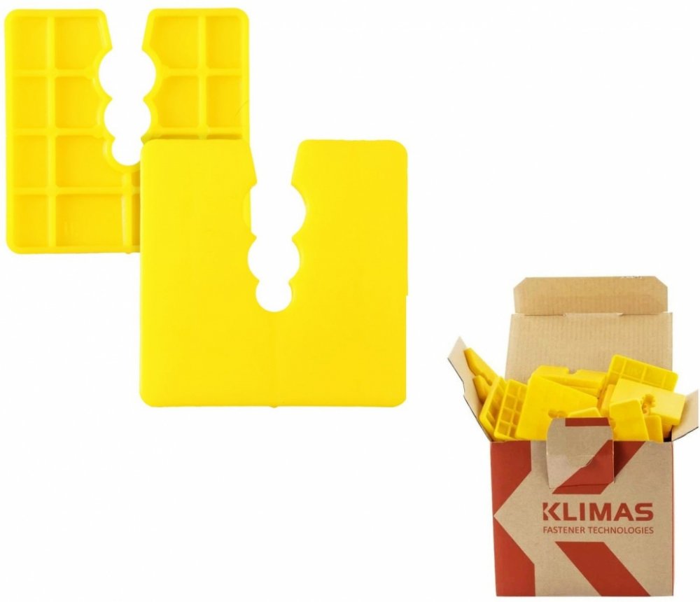 KLIMAS Wkret-met Distanční podložky 50x50mm - PVC se používají k vyrovnání nerovných ploch. Podložky mají 3 otvory, takže je lze uchytit pomocí spojek (šroubů) různých průměrů (6, 8, 10 mm). Mohou být použity mimo jiné na:- vyrovnání startovacích lišt pro zateplovací systémy- k vyrovnání latí a laťování- vyrovnání nosníků Způsob montáže Zvolte tloušťku podložky do vyrovnávací mezery mezi lištou a podkladem. Podložku zasuňte pod vyrovnávací lištu a umístěte vhodný otvor pod průměr spojky. Namontujte spojku do podkladu. Nedoporučuje se instalovat spojovací prvky bez kontroly mezer pod lamelami, může to způsobit rozbití lamel nebo profilů na vyskytujících se nerovnostech.