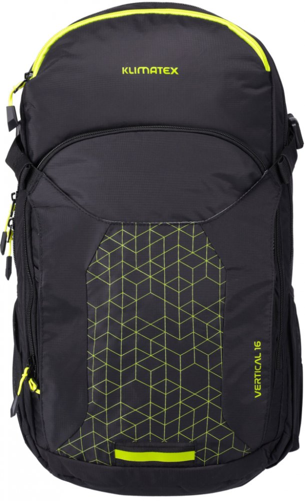 Cyklobatoh Klimatex VERTICAL16 je skvělým parťákem pro každého cyklistu, který ocení praktické uspořádání a pohodlí i na delších trasách. Zádový systém tvoří panely z EVA pěny, které zajišťují příjemné usazení batohu a optimální odvětrávání. Ramenní popruhy z prodyšné síťoviny spolu s nastavitelným prsním popruhem a pevným bederním pásem poskytují stabilitu i při náročnějších jízdách. Hlavní komora obsahuje přihrádku na hydrovak (není součástí), zatímco velká vnější kapsa pojme bundu nebo jiné objemnější věci. Pro menší předměty jsou k dispozici kapsy na zip, včetně zateplené kapsy na telefon nebo klíče. Batoh je vybaven integrovanou pláštěnkou, držákem na blikačku a reflexními prvky pro vyšší bezpečnost. Boční kompresní popruhy umožňují snadné přizpůsobení objemu batohu.