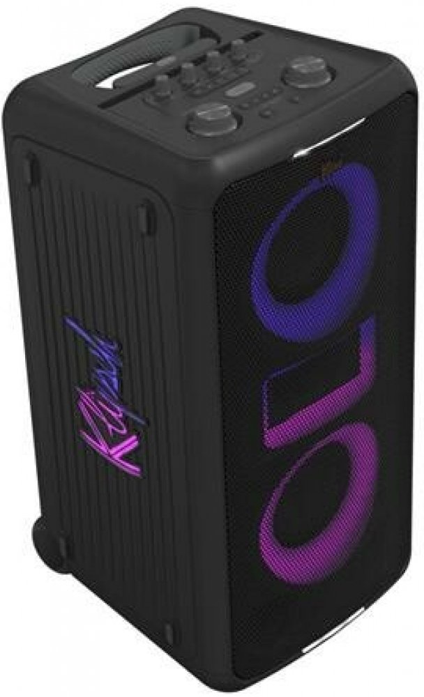 Má integrovaná kolečka a rukojeť pro snadnou přepravu, což z něj dělá ideální volbu pro párty venku nebo na cestách. Je také odolný proti stříkající vodě s certifikací IPX4.