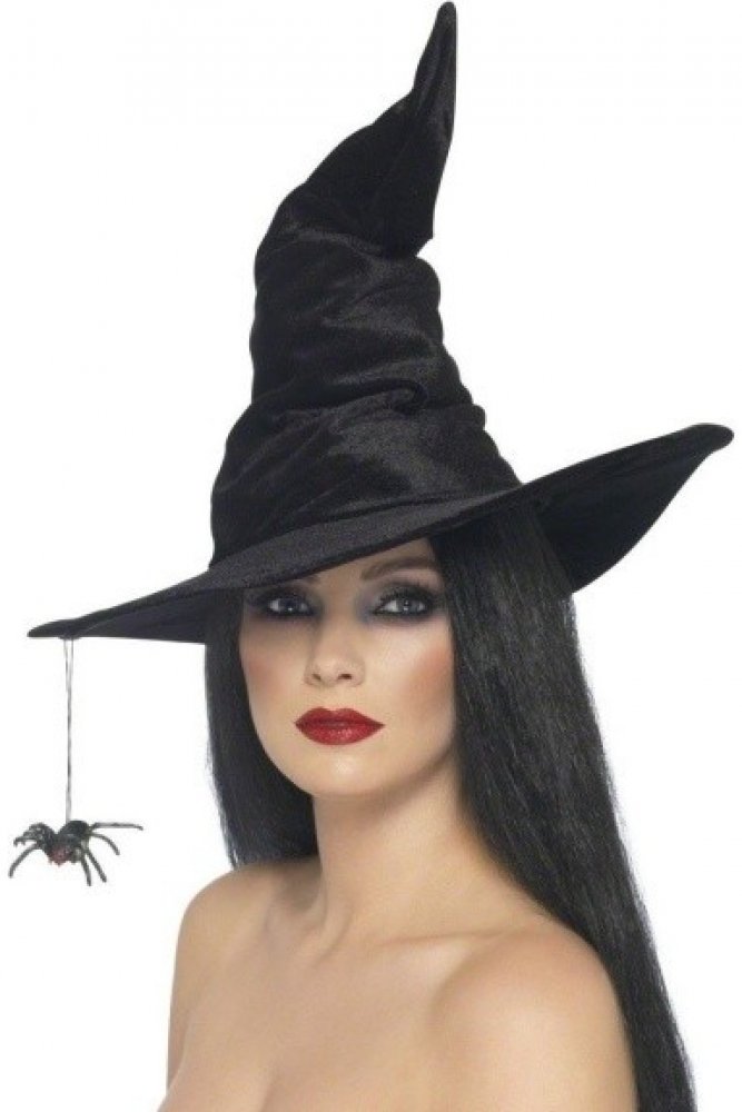 Vysoký sametový čarodějnický klobouk v černé barvě s pavoukem je originální a nezbytný doplněk k čarodějnickému kostýmu na karnevalovou párty nebo pálení čarodějnic v přírodě. Sametový klobouk s čarodějnicí a falešným pavoukem je fantastická kvalita a doporučujeme doplnit čarodějnickým pláštěm z naší nabídky.