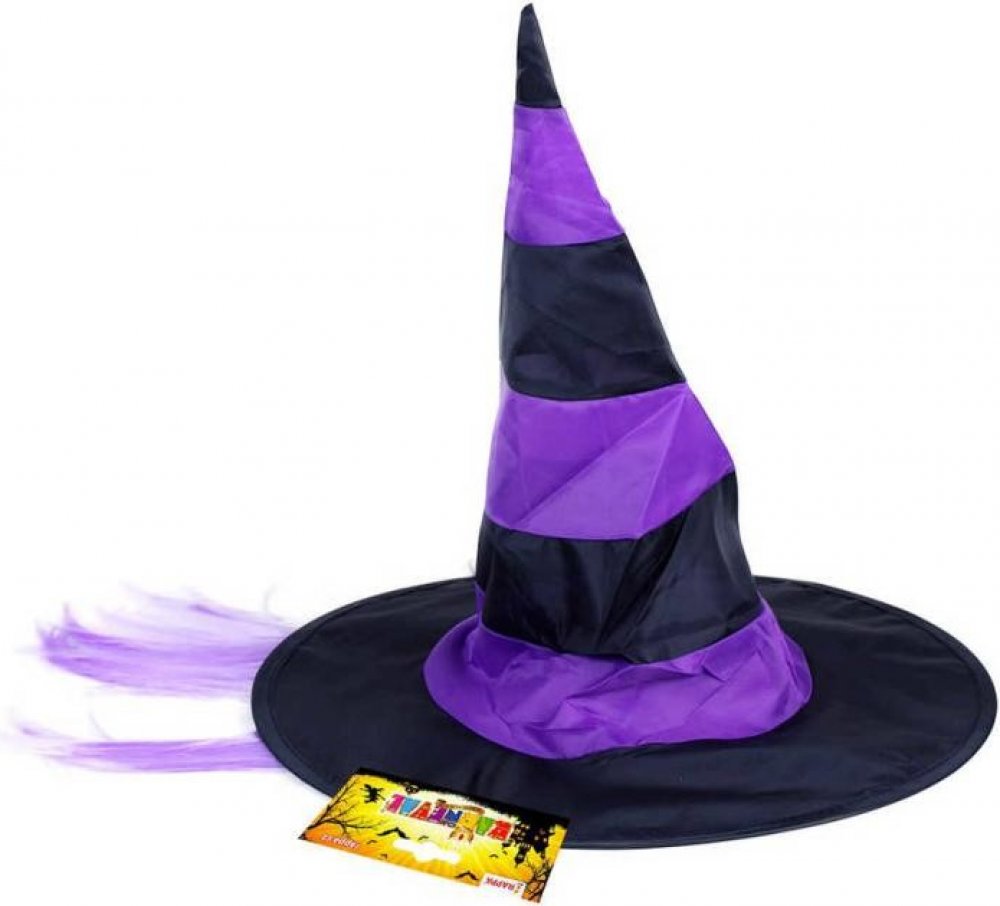 Tento klobouk pro čarodějky s vlasy je super doplněk ke kostýmu na halloween! Klobouk je zdoben fialovými a černými pruhy. Ideální doplněk na Halloweenskou párty. Staň se hvězdou karnevalového večírku díky tomuto nepřehlédnutelnému klobouku!
