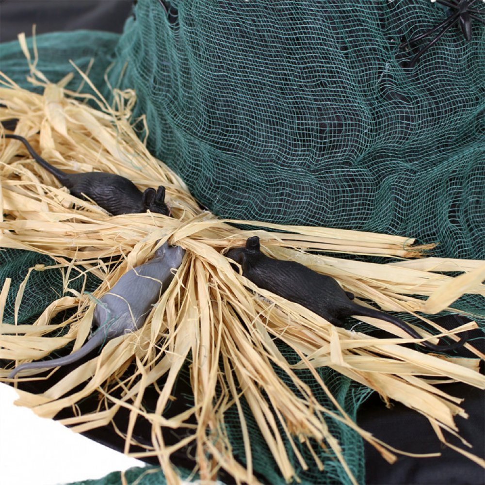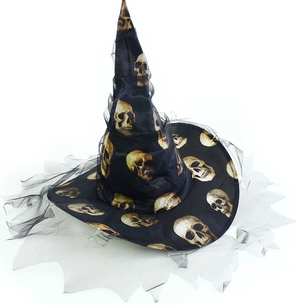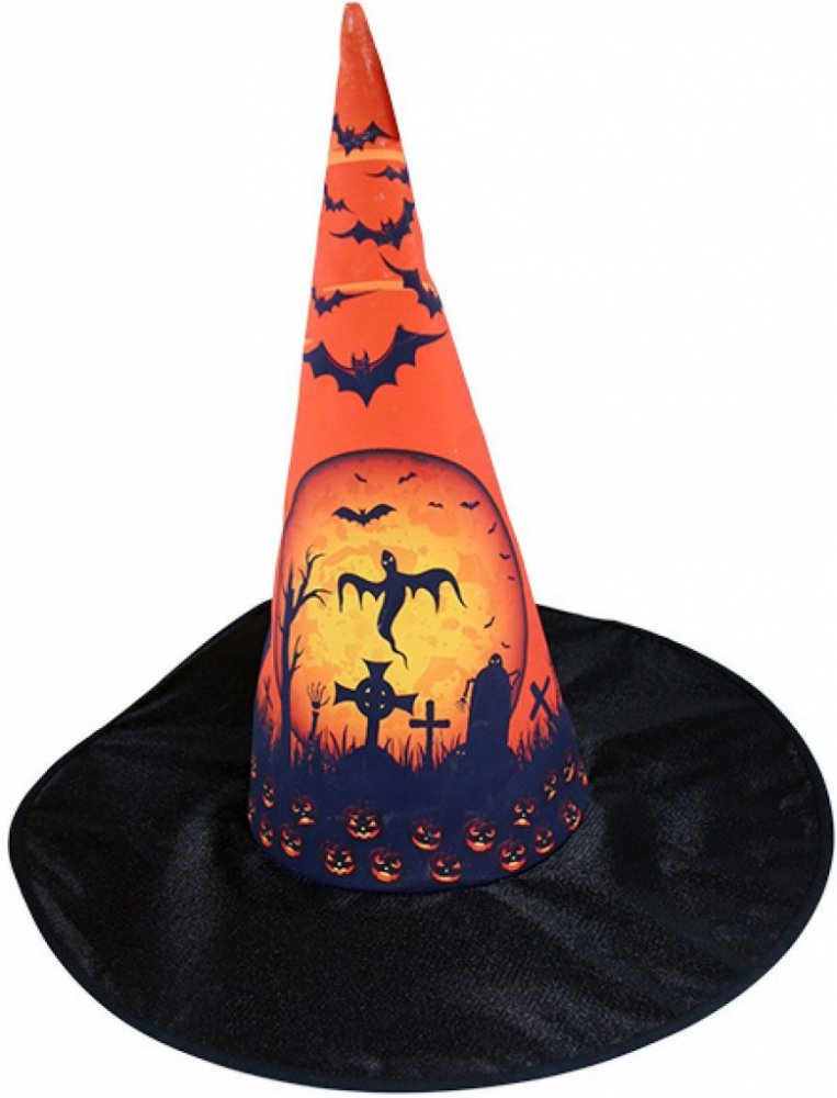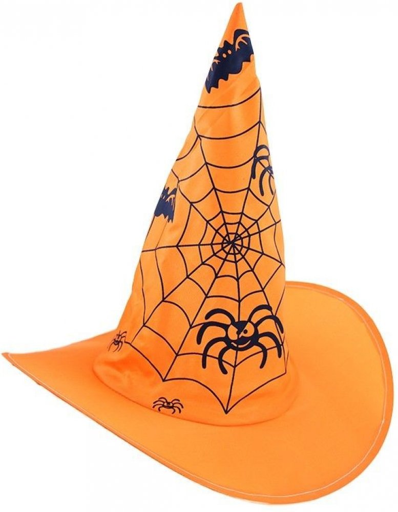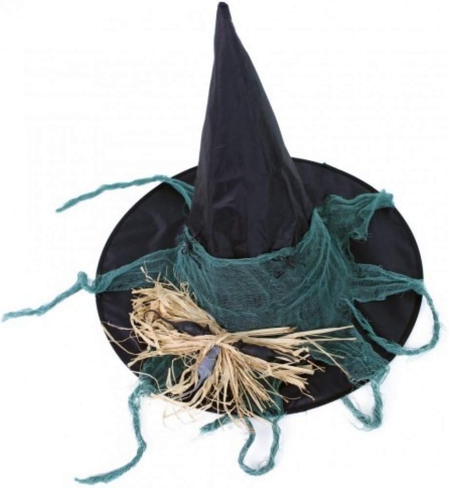 Stylový čarodějnický klobouk pro dospělé. Tento parádní kousek černé barvy je zdoben zelenou gázou a pavoučky. Staňte se hvězdou karnevalového večírku díky tomuto nepřehlédnutelnému klobouku a ohromte tak všechny své přátele!