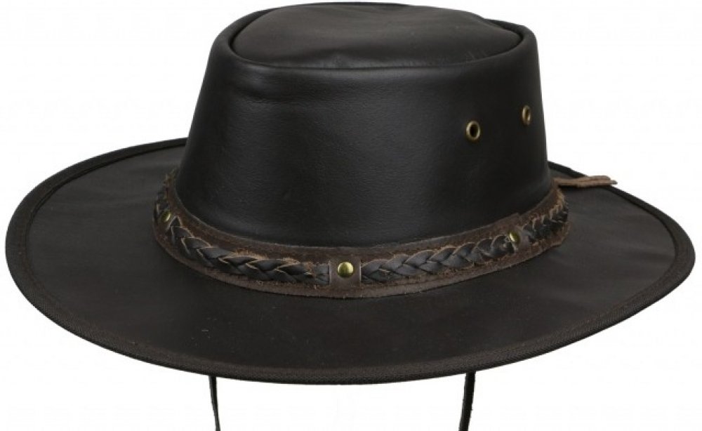 Klobouk kožený - HENBURY. SCIPPIS klobouk Henbury působí silným a robustním dojmem. Je vyroben z velmi jemné a lehké impregnované kůže. Součást klobouku je praktický kožený řemínek s velmi snadným ovládáním, který lze lehce odejmout. Je vybaven větracími očky pro snadné odvětrání v horkých dnech. Ozdoben exklusivním pleteným páskem z pravé kůže. Uvnitř klobouku je měkký elastický pásek, který má f...
