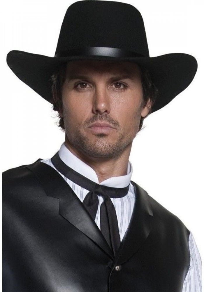 Černý elegantní klobouk bezvadně doplník kostým kovboje nebo odvážného pistolníka. Uplatnění najde na westernové párty nebo večírku v kovbojském stylu.
