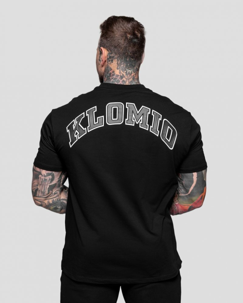 Klomio 95% bavlna 5% spandex s krátkým rukávem černá s kulatým výstřihem sportovní i volnočasové s nápisem