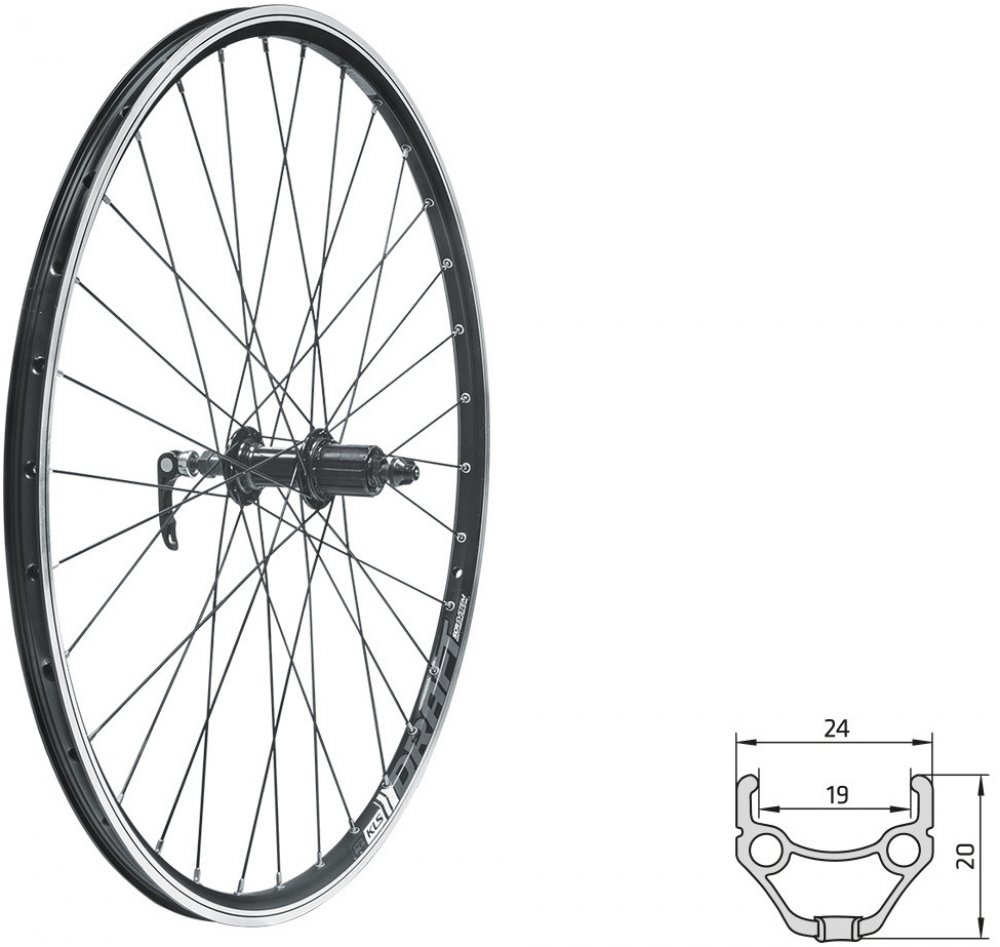 Zapletené koleso KLS DRAFT V-brake R je určené pre bežné bicykle s V-brzdami, upínaním pomocou rýchloupínáku a s kazetovým nábojom.