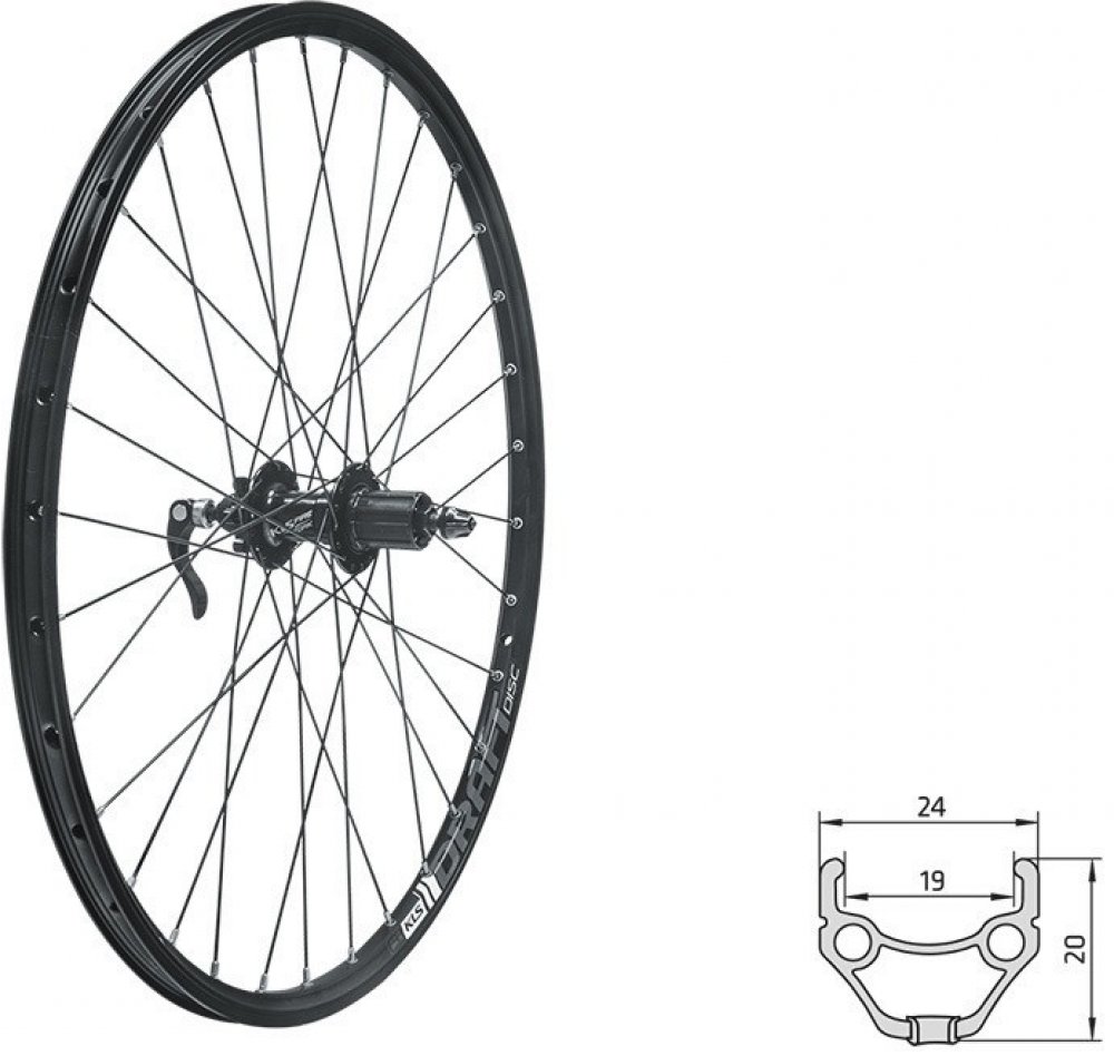 Zapletené koleso KLS DRAFT DSC F je predné koleso určené pre bežné vidlice s diskovými brzdami a upínaním na vidlicu pomocou rýchloupínáku.