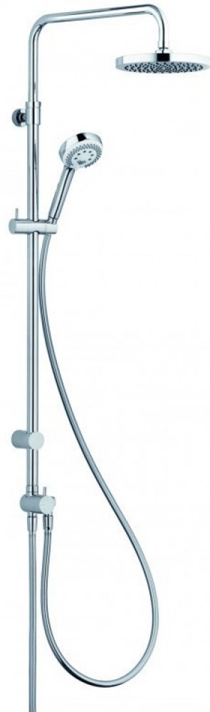 Sprchová souprava Logo Dual Shower System nástěnná montáž s otočným a výškově nastavitelným ramenem horizontálně a vertikálně nastavitelný jezdec dvojcestný keramický přepínač zásobování vodou přes připojovací hadici G 1/2 x G 1/2 x 800 mm SUPARAFLEX SILVER sprchová hadice 6107205-00 s talířovou hlavovou sprchou KLUDI A-QA Ø 200 mm 6651005-00 s ruční sprchou LOGO 3S 6830005-00 s upevňovacím materi...