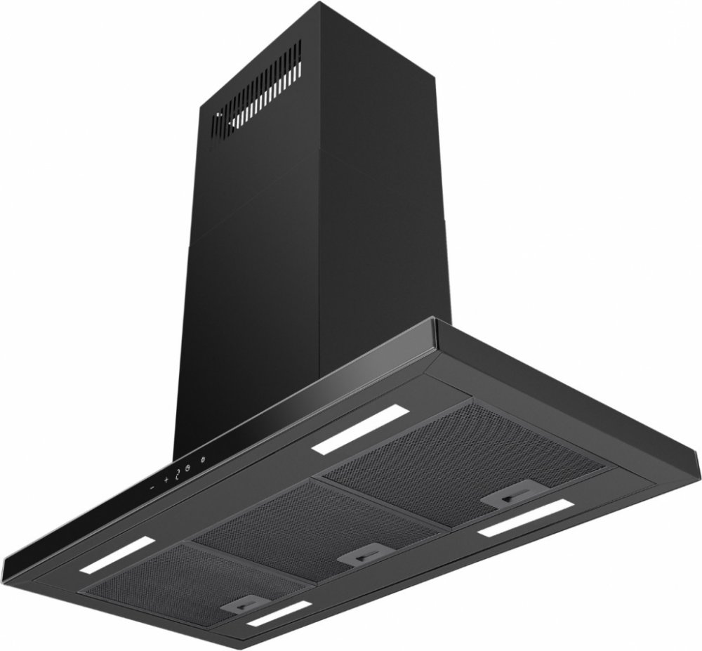 Tento luxusní ostrůvkový odsavač par v elegantním provedení černý matný kov se skleněným panelem se stane dominantou vaší kuchyně a zároveň zajistí čistý a svěží vzduch bez pachů a mastnoty. Díky inovativní funkci HTH - automatickému bezdrátovému ovládání odsavače přímo z varné desky - bude vaření ještě pohodlnější a efektivnější.