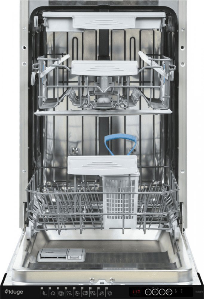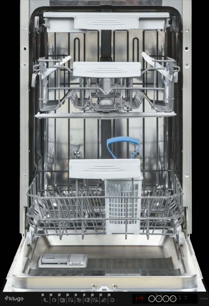 Plně vestavná myčka nádobí šířky 45 cm; energetická třída E; 10 sad nádobí; 8 mycích programů; 6 mycích teplot: 30/40/50/60/65/70 + Auto; červený LED displej + elektronické ovládání; EcoWash – mytí poloviční náplně (3 režimy); odložený start až o 19 hodin; ochrana proti přetečení a úniku vody; ukazatel hladiny soli a leštidla; horní koš nastavitelný při zatížení; třetí modulární vyjímatelný příbor...