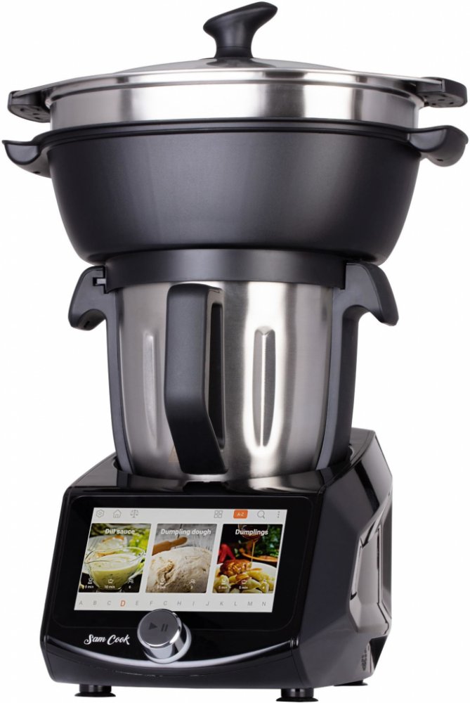 Termorobot Sam Cook je neuvěřitelně všestranný a zvládne téměř jakoukoliv kuchařskou činnost. Od vážení a přípravy surovin (např. sekání nebo strouhání) přes míchání, hnětení a šlehání, až po smažení a vaření sous-vide či v páře. Termorobot Sam Cook vám usnadní přípravu jakéhokoli pokrmu a promění vaši kuchyni v profesionální kulinářské centrum.