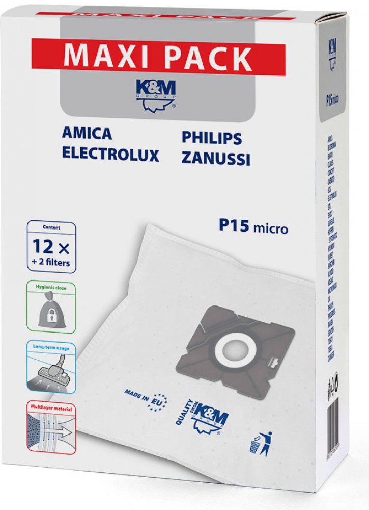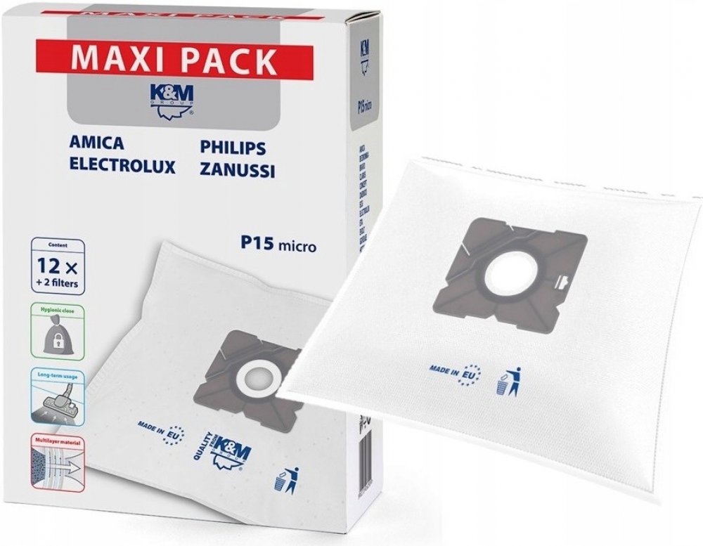 Praktická sada obsahuje 12 syntetických sáčků do vysavače a 2 filtry, kompatibilní s vybranými modely značek AMICA, PHILIPS, ELECTROLUX, ZANUSSI a MIDEA. Odolný vícevrstvý materiál zajišťuje vyšší filtrační účinnost, lepší sací výkon a delší životnost oproti papírovým sáčkům.Udržujte domácnost dokonale čistou díky kvalitním syntetickým sáčkům do vysavače P15/Maxi. Díky vícevrstvé konstrukci zachyt...