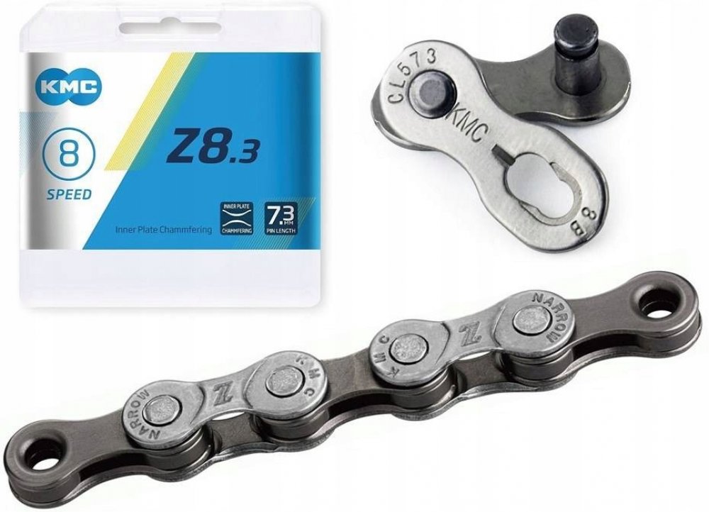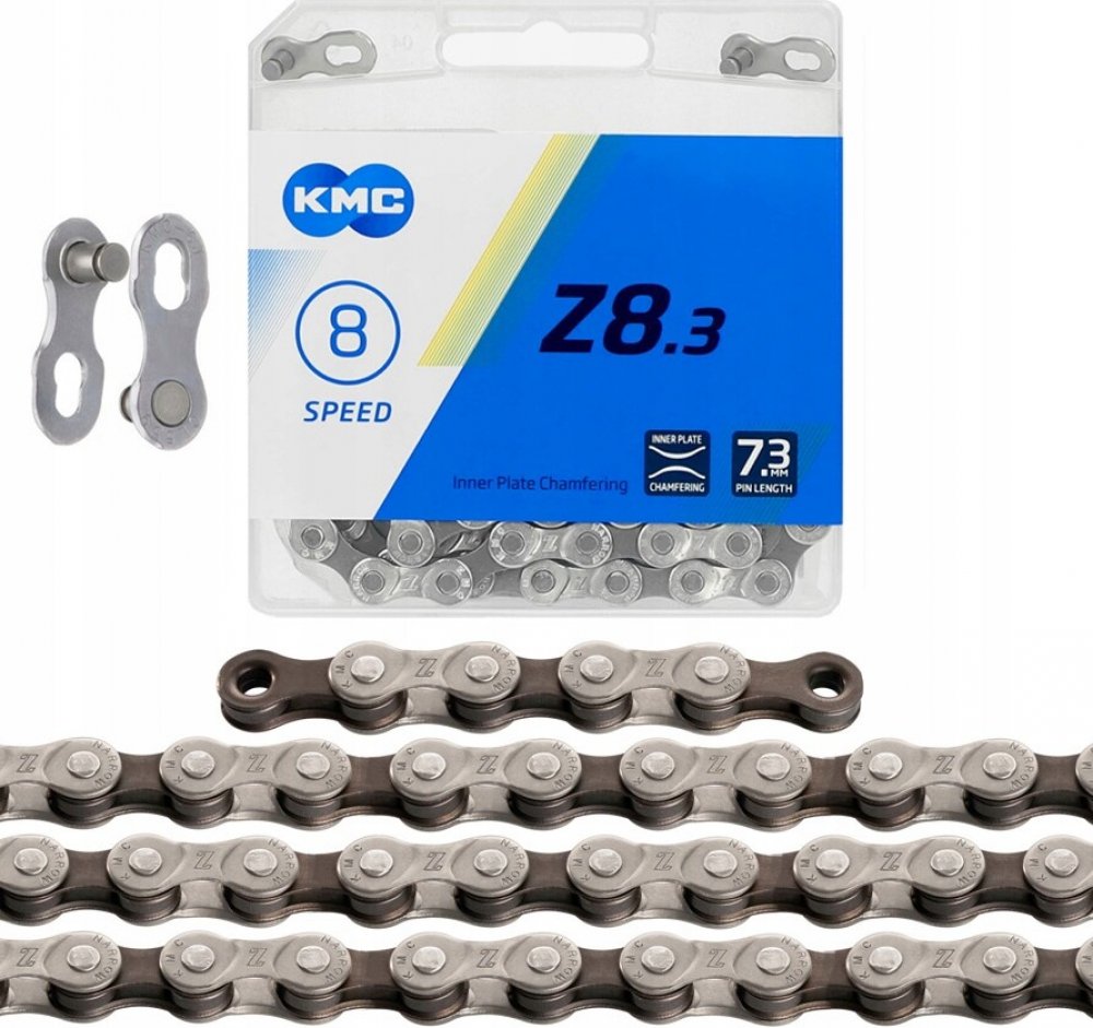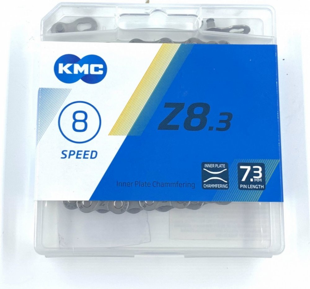 Cyklistický řetěz KMC, určený pro jízdní kola s 8-rychlostním pohonem. Je kompatibilní s řetězy Shimano HG40