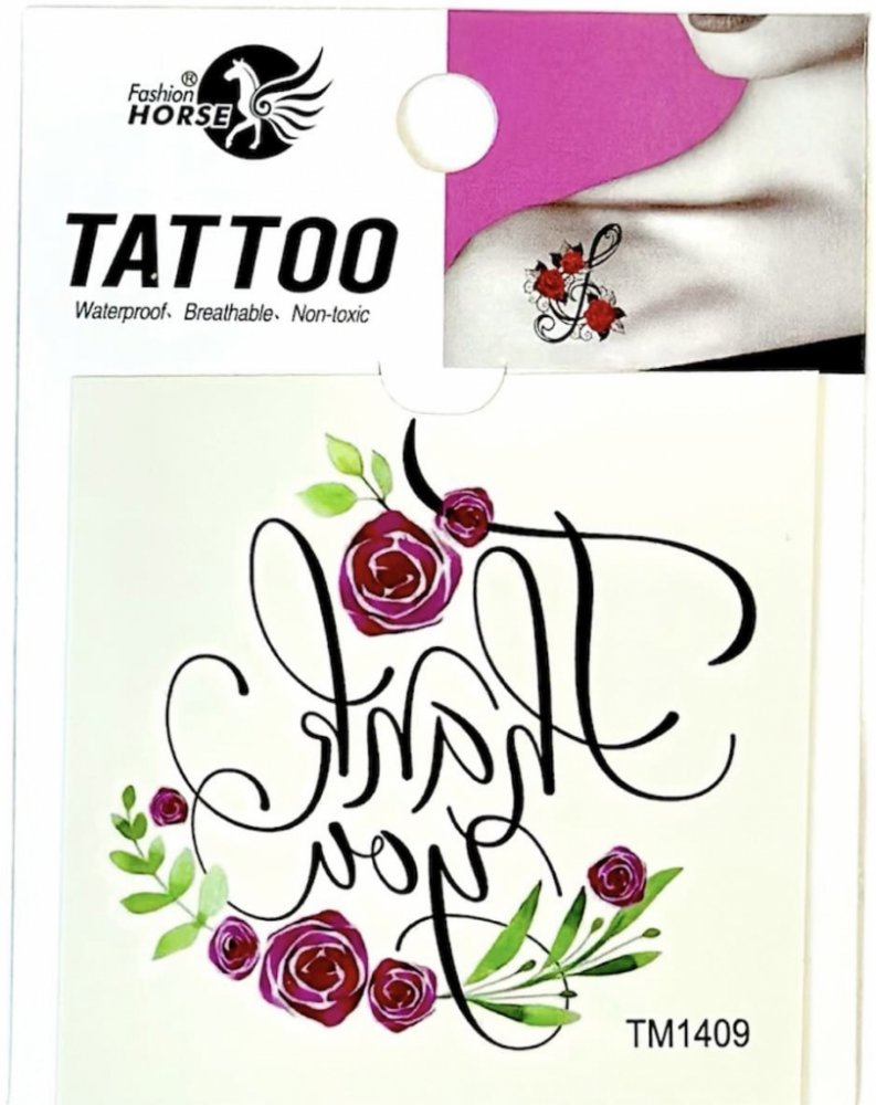 Z vystřihnutého kousku tetování vyjměte průhlednou ochrannou folii a přiložte obrázek na libovolné místo na těle