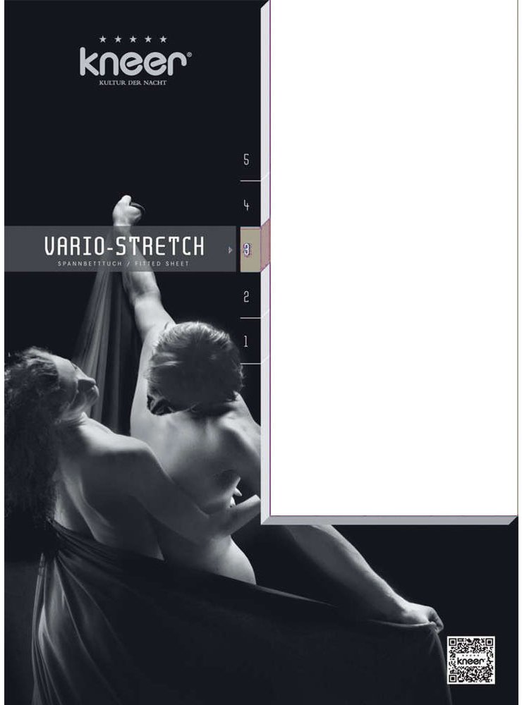 Prostěradla KNEER VARIO STRETCH jsou velice jemná, komfortní a díky použitým materiálům (50% jersey bavlna, 45% modal a 5% elastan) extrémně roztažitelná.Jsou vhodná pro toppery s výškou 4 - 12 cm .Vysoká kvalita zpracování a použitých materiálů zaručuje perfektní uložení na jakýkoli topper.Koncové části prostěradla jsou obšity elastickou gumou, která je udržuje na topperu dokonale vypnuté a povrc...