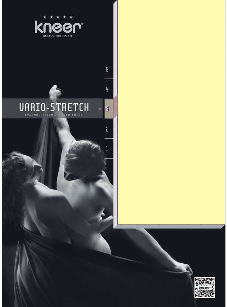 Prostěradla KNEER VARIO STRETCH jsou velice jemná, komfortní a díky použitým materiálům (50% jersey bavlna, 45% modal a 5% elastan) extrémně roztažitelná.Jsou vhodná pro toppery s výškou 4 - 12 cm .Vysoká kvalita zpracování a použitých materiálů zaručuje perfektní uložení na jakýkoli topper.Koncové části prostěradla jsou obšity elastickou gumou, která je udržuje na topperu dokonale vypnuté a povrc...