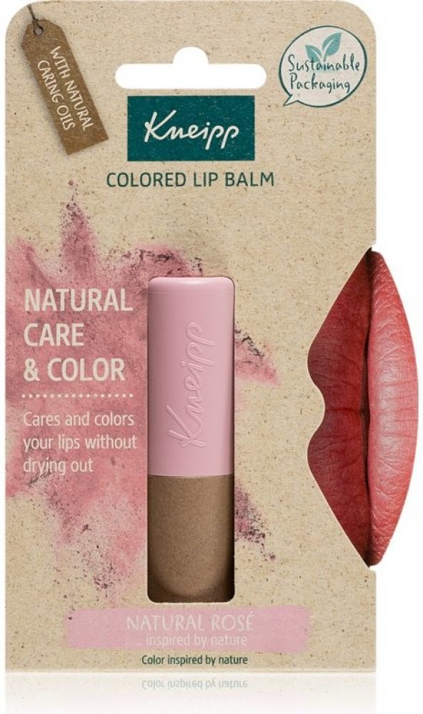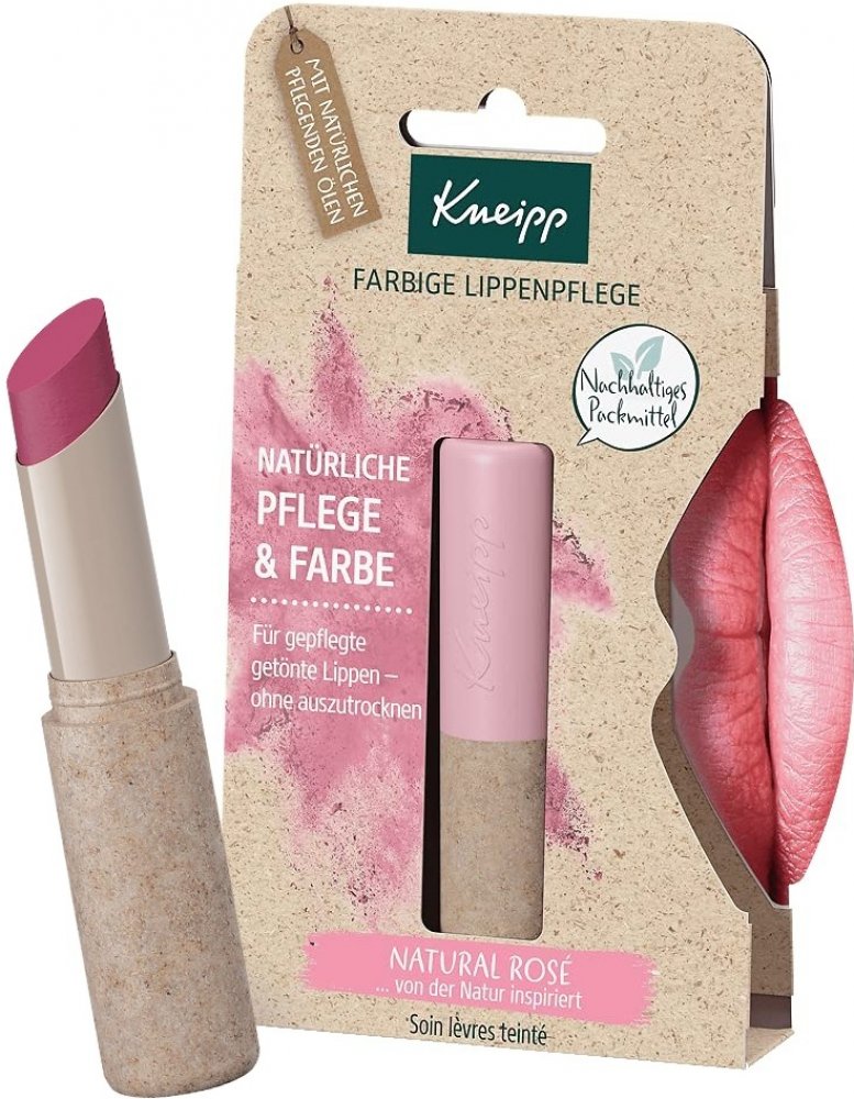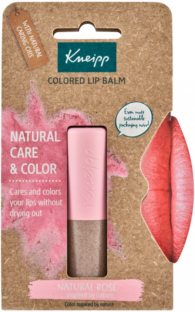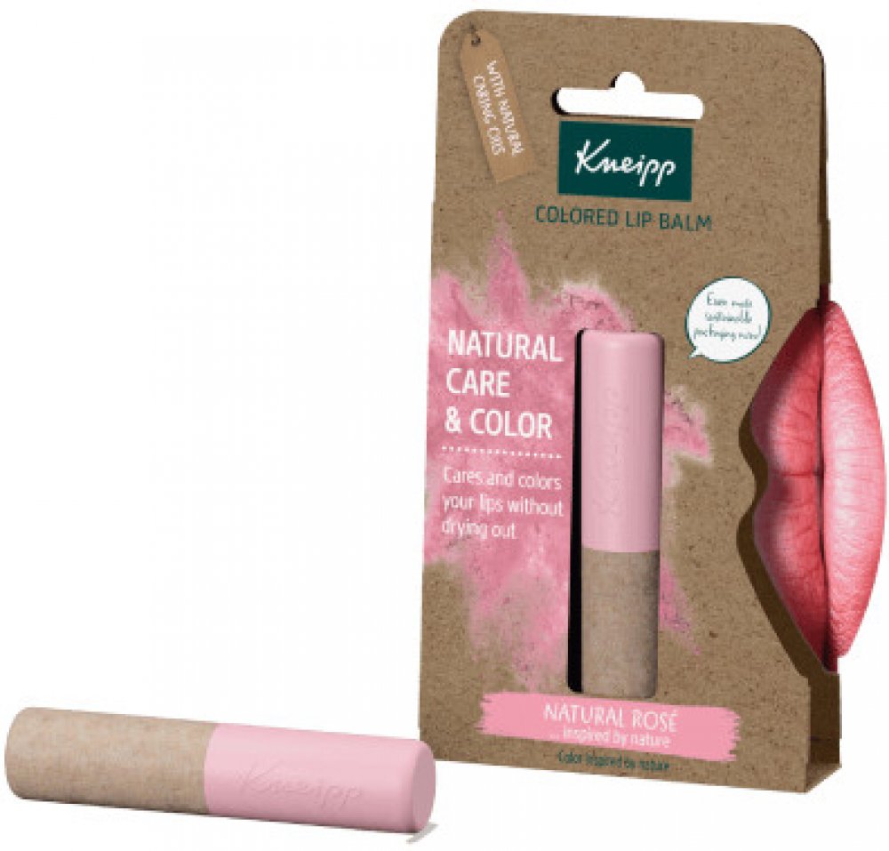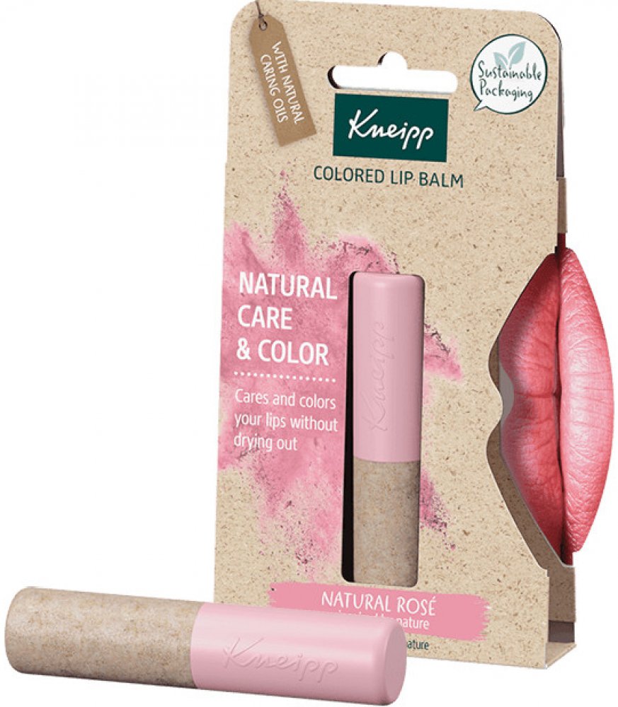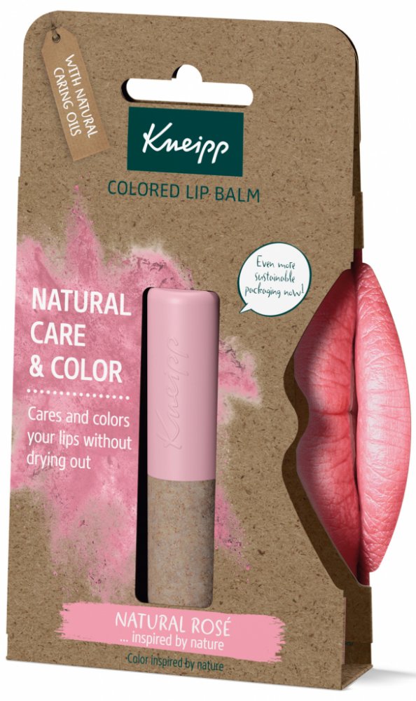 Barevný balzám na rty Kneipp Natural Rosé s mangovým máslem, avokádovým olejem a berry voskem pečuje o citlivou pokožku rtů a zabraňuje dalšímu popraskání. Výtažek z ředkvičky navíc rty zbarví do růžova. Unikátní složení pak zajišťuje neomezenou expiraci.