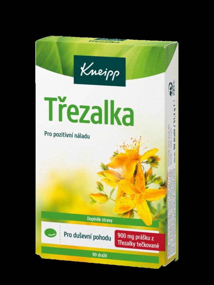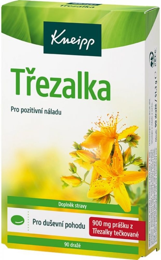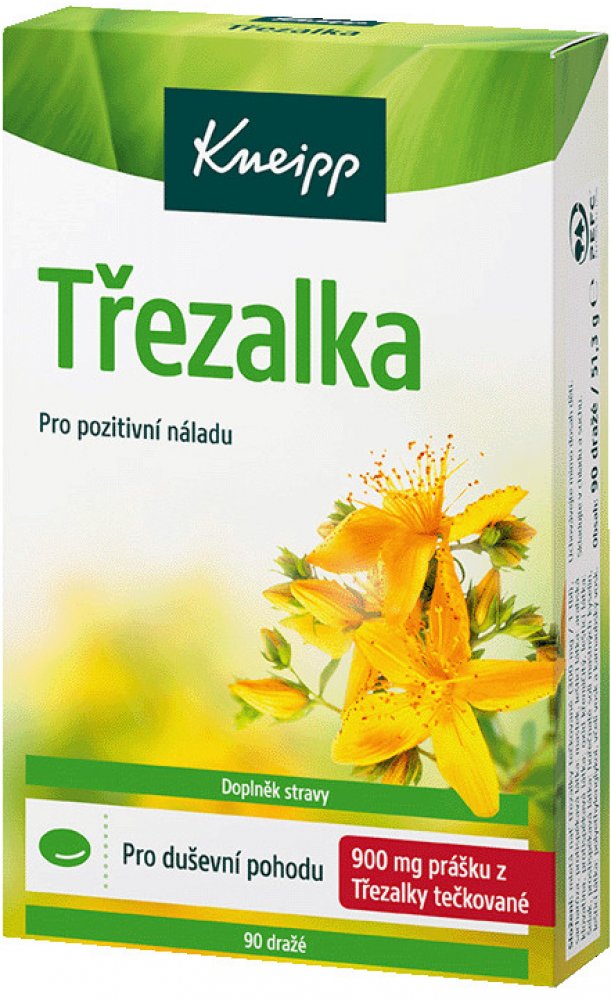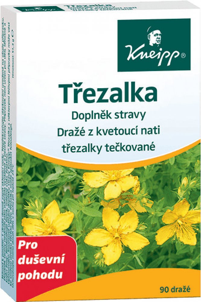 Ne vždy zvládáte stresové situace podle svých představ? Vyzkoušejte Kneipp doplněk stravy Třezalka s výtažky z kvetoucí nati třezalky tečkované, který působí příznivě na zklidnění nervového systému a celkovou vnitřní pohodu. Na rozdíl od bylinných čajů s obsahem této byliny můžete mít dražé vždy po ruce. 1 tableta obsahuje 300 mg třezalky, v rámci denní dávky tedy přijmete celkem 900 mg třezalky. ...