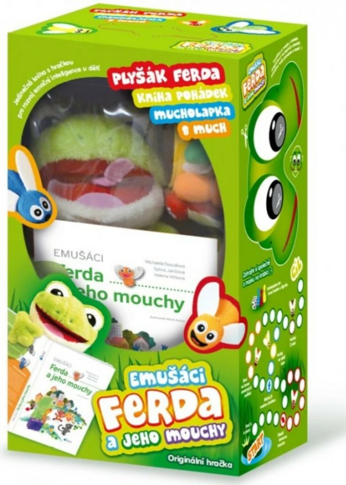 Jednotlivé pocity, které dítě zažívá, znázorňují barevné plyšové mouchy. Díky tomu, že si na ně dítě může sáhnout, lépe se s pocity ztotožní. Mouchy se mohou vkládat žabákovi Ferdovi do pusy a hrát s nimi scénky. Pokud dítě čeká obtížná situace, může si s sebou vzít mouchu, která mu ji pomůže zvládnout. Jednoduše s jejich pomocí také ukáže, jaké emoce zrovna pociťuje. Hračka i kniha vznikly ve spolupráci pedagogů, dětských psychologů a rodičů s dětmi.