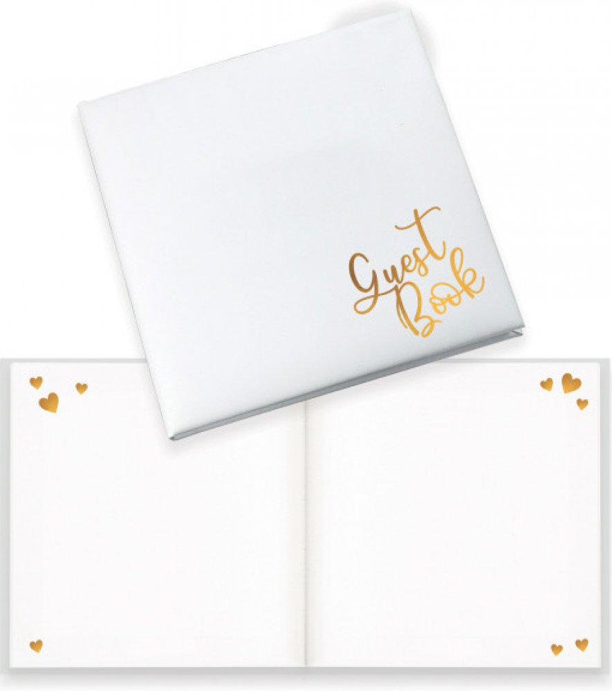 Je určena pro zapisování přání a gratulací novmanželům od svatebních hostů po obřadu a během svatební hostiny. Svatební kniha s nápisem Quest book má pevný vinylový obal a vnitřní stránky mají v rozích potisk zlatých srdíček.