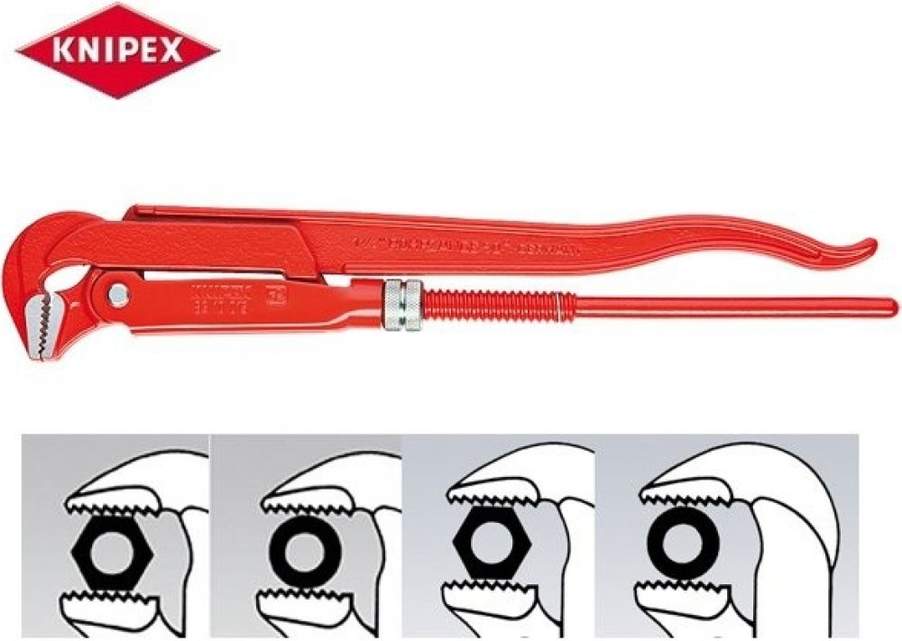 Klíč na trubky („hasák“), rozsah 13 cm, délka 75 cm – KNIPEX 83 10 040 Hasák tzv. švédského tvaru. Zahnuté čelisti pod úhlem 90 °, ozubení je přesazené proti směru otáčení (lepší uchopení předmětu). Má dvojitou rukojeť tvaru T. Klíč na trubky Knipex 83 10 040 se nastavuje na obrobku: otočením vroubkovaného šroubu se čelisti rozevřou, vnější rukojeť se nasadí na obrobek, vnitřní rukojeť se přitlačí...