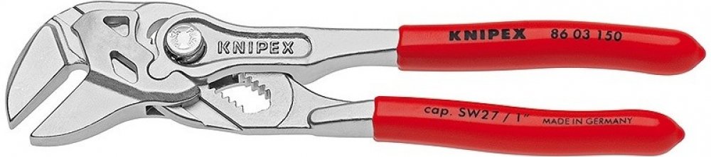 nahrazuje sadu klíčů na šrouby, metrické i palcové. hladké čelisti pro šetrnou montáž povrchově zušlechtěných armatur - práce přímo na chromu!. Výborně se hodí k uchopování, držení, stlačování a ohýbání obrobků. žádné poškození hran u choulostivých armatur díky celoplošné opoře bez vůle. Rychlé nastavení stisknutím knoflíku přímo na sevřené součásti. žádné neúmyslné přenastavení čelistí a žádné proklouznutí kloubu. Plynulé nastavení všech velikostí klíčů až do uvedené kapacity pomocí paralelně vedených čelistí. Zdvih mezi čelistmi umožňuje rychlé utahování a povolování šroubových spojů na principu rohatky se západkou. Velmi silné sevření díky 10násobnému zesílení síly ruky.