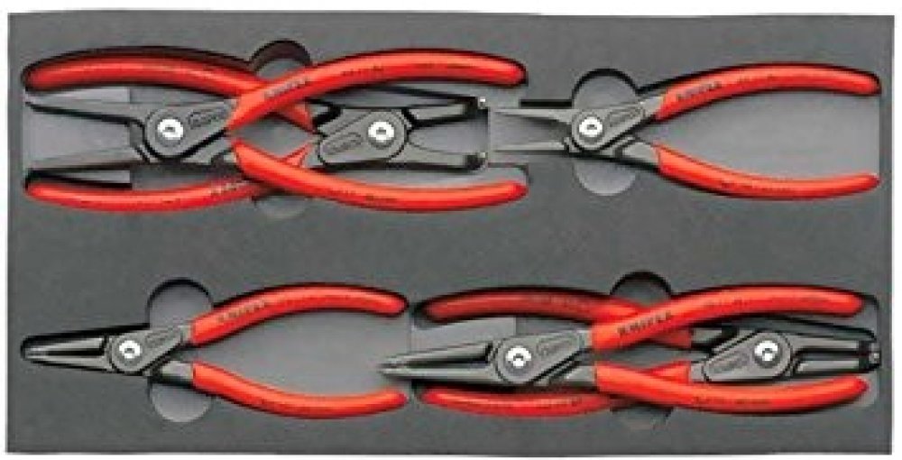 Sada základních kleští "Basic" s nářadím 4 ks KNIPEX je uložena v pěnové podložce pro pracovní stůl a dílenský vozík. Slouží k přehlednému uschování nářadí. Přesné vybrání pro uložení kleští. Pěnová podložka je vyrobena z dvoubarevné pěnové hmoty s uzavřenými póry. Obsahuje 6 kleští.