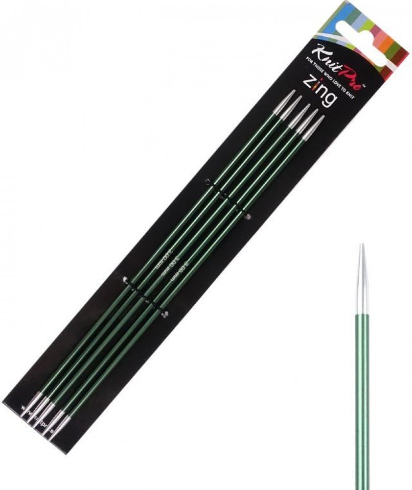 Na kovových jehlicích KnitPro Zing naleznete krásně zářivé metalické barvy. Ponožkové jehlice jsou vyrobeny z odlehčeného, prvotřídního kovu. V balení do velikosti 3,25 je 6 kusů ponožkových jehlic, další velikosti jsou již po 5 kusech v balení. Jehlice jsou na výběr ve velikostech 2-8 mm.