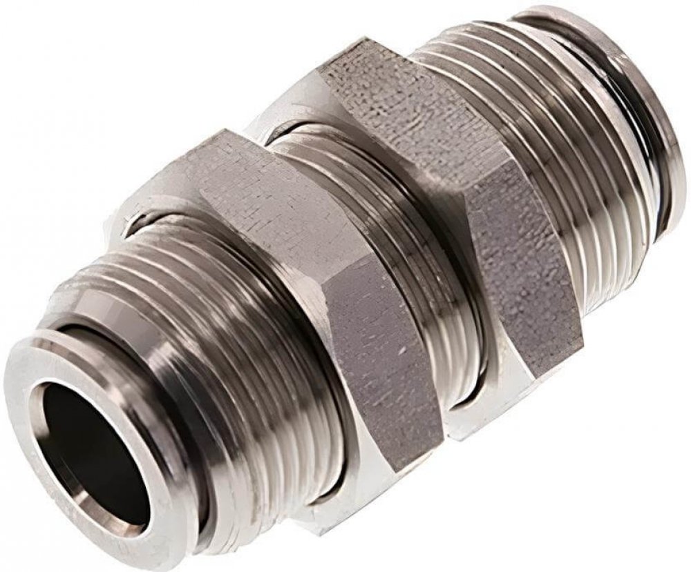 Nerezová průchodka v nástrčném provedení 4 mm Použité materiály: tělo, kroužek a závitová část z nerezové oceli AISI316, těsnění viton Nerezové provedení je zvláště vhodné pro náročné aplikace v chemickém, farmaceutickém a elektronickém průmyslu Nástrčné spojky jsou vhodné pro spoje hadic a trubek v automatizační technice o přesných rozměrech do maxmáilního tlaku 18 bar o teplotě až 110°C.