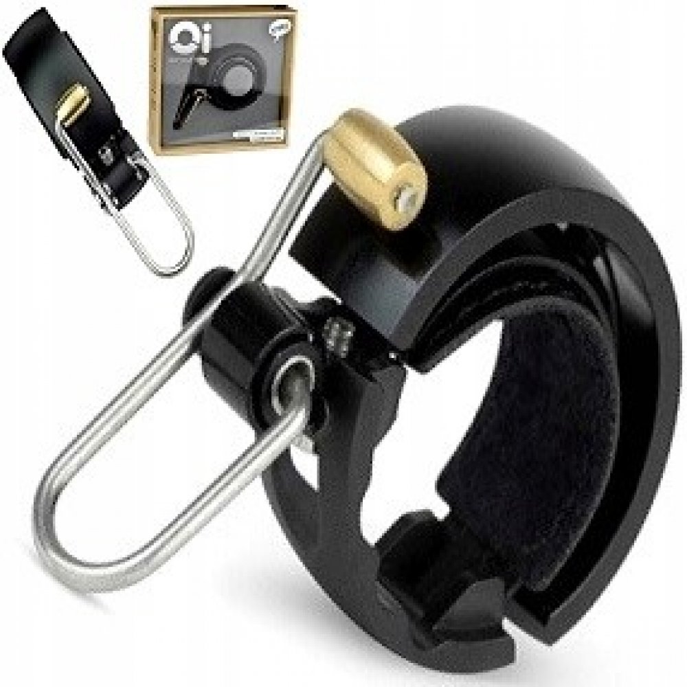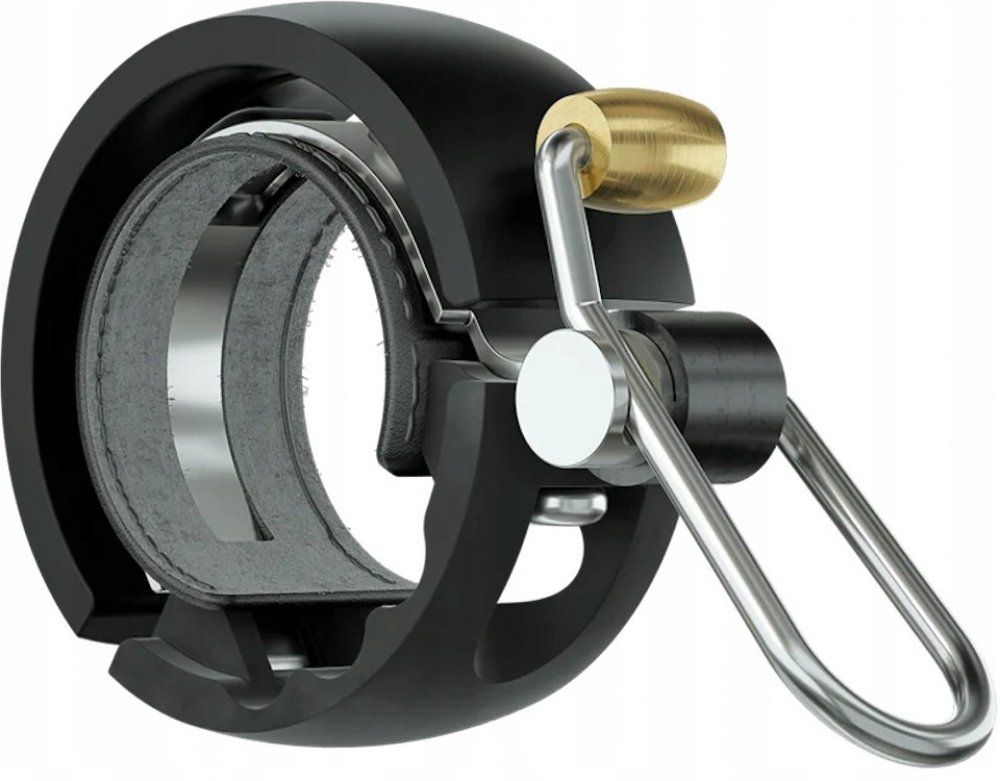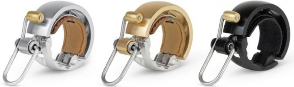 Celokovový zvonek Knog Oi LUXE, s koženou vložkou.